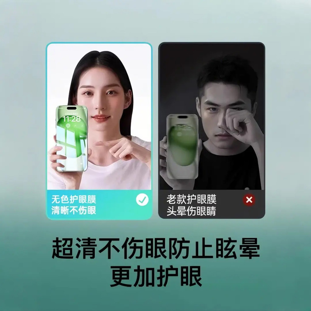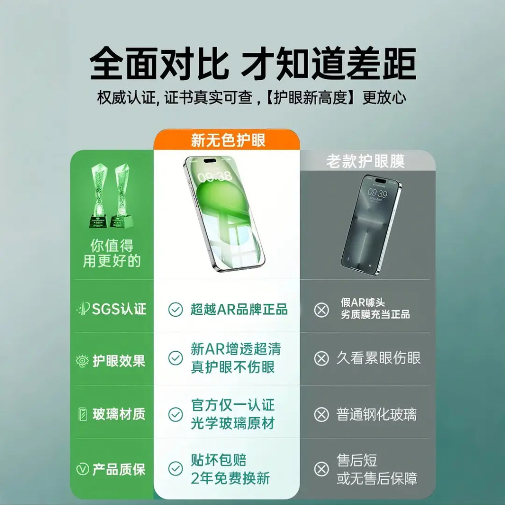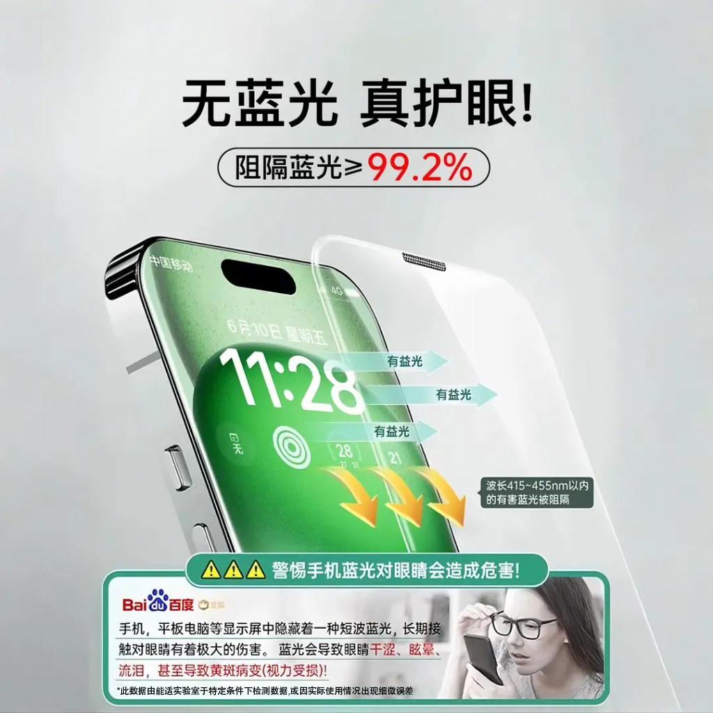 【美国进口AR护眼膜】能适适用苹果16钢化膜15pro/13promax手机护眼膜14Plus防窥xs贴膜pm防蓝光12新款11增透