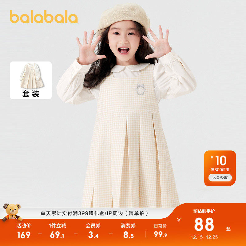 巴拉巴拉童装儿童连衣裙长袖套装女童春秋装衬衣吊带两件套洋气甜