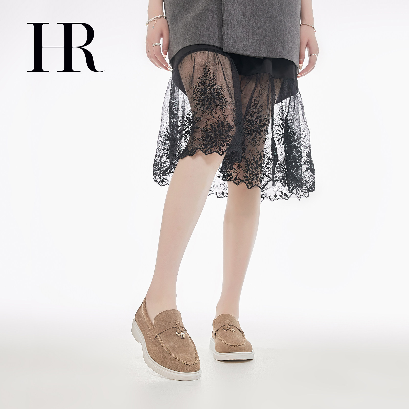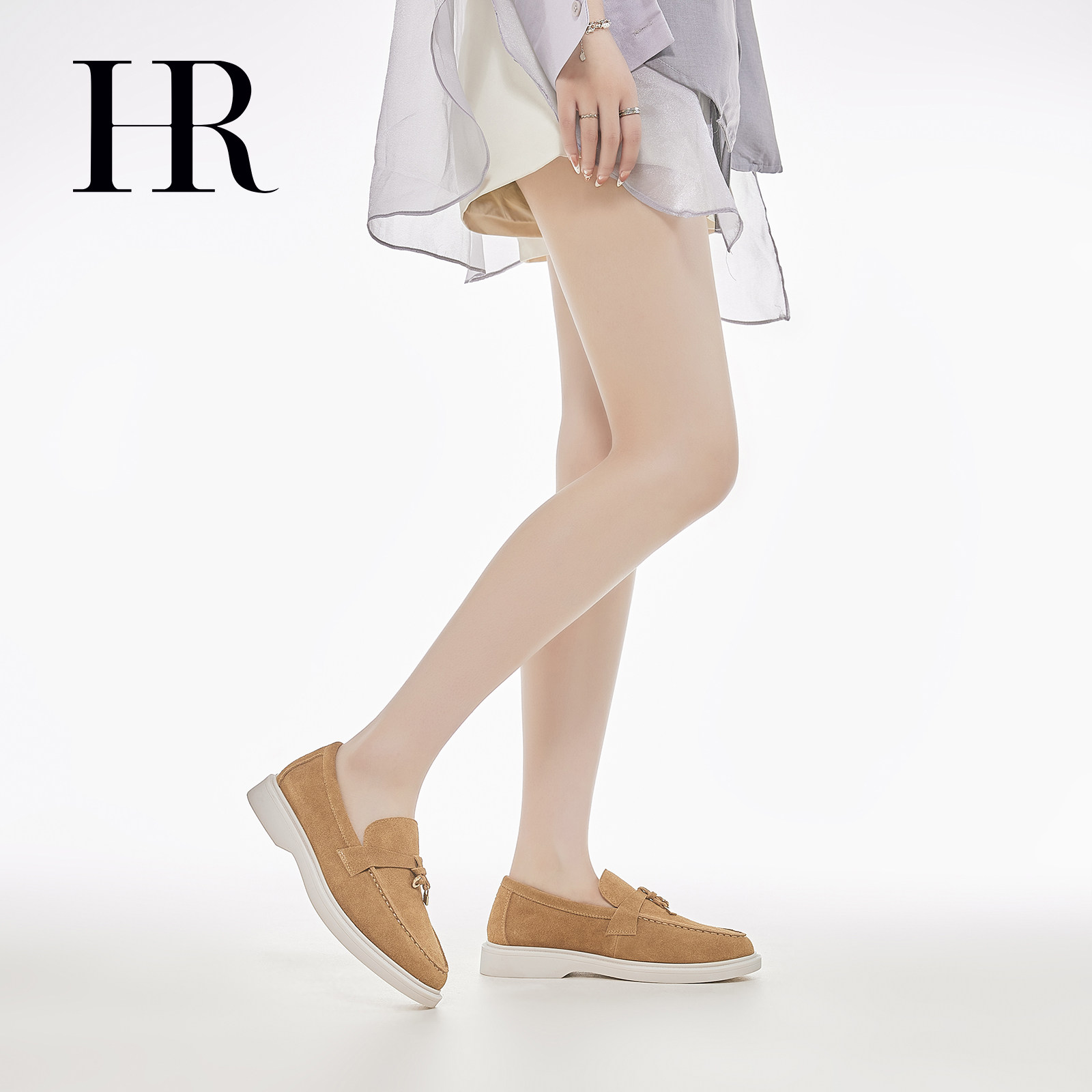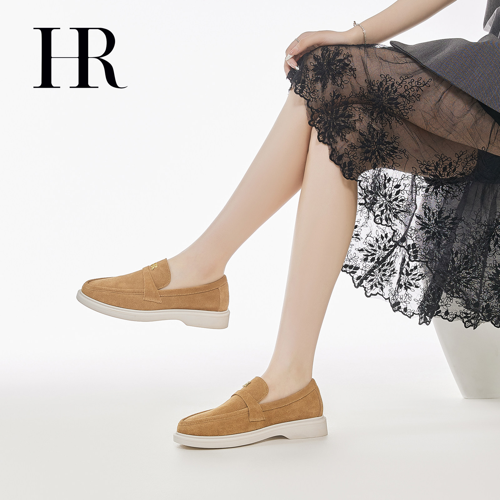 HR赫莲娜反绒皮乐福鞋2026年春季新款女鞋子一脚蹬舒适百搭豆豆鞋