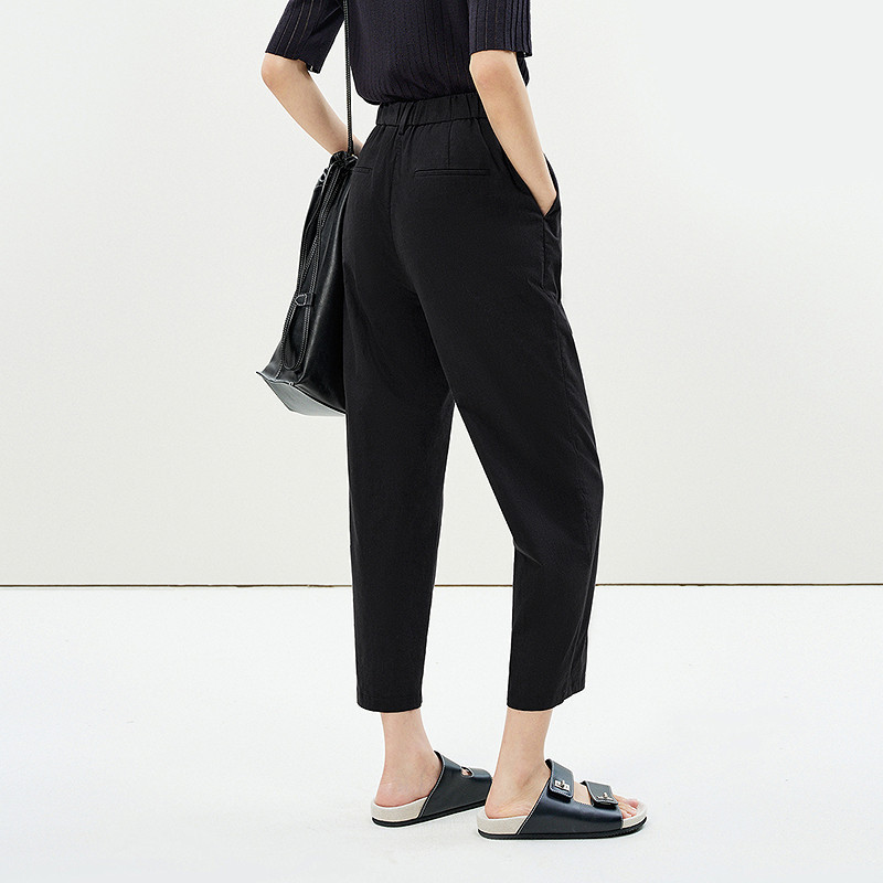 LESS春夏高腰通勤休闲裤女修身百搭气质锥形显瘦九分裤2P5E11370