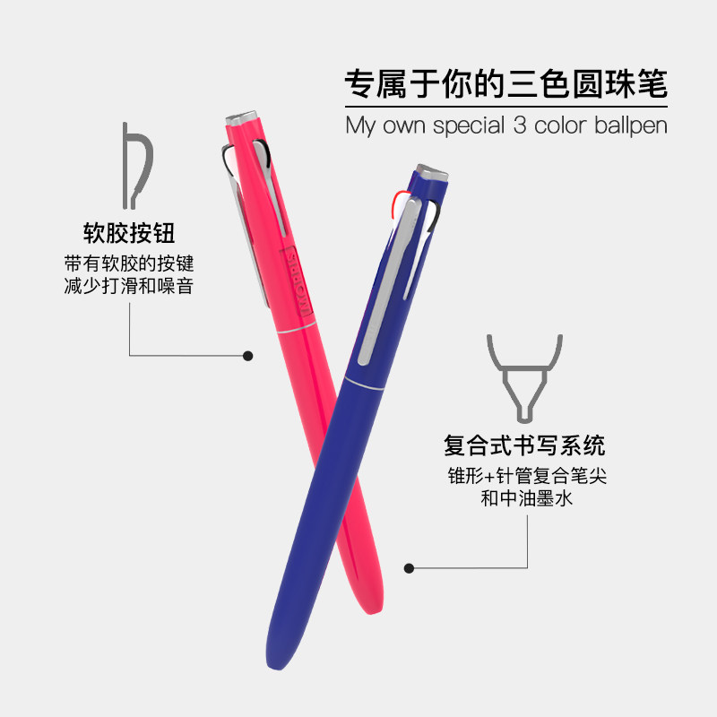 低粘度油墨 静音软胶按钮 时尚配色笔杆
