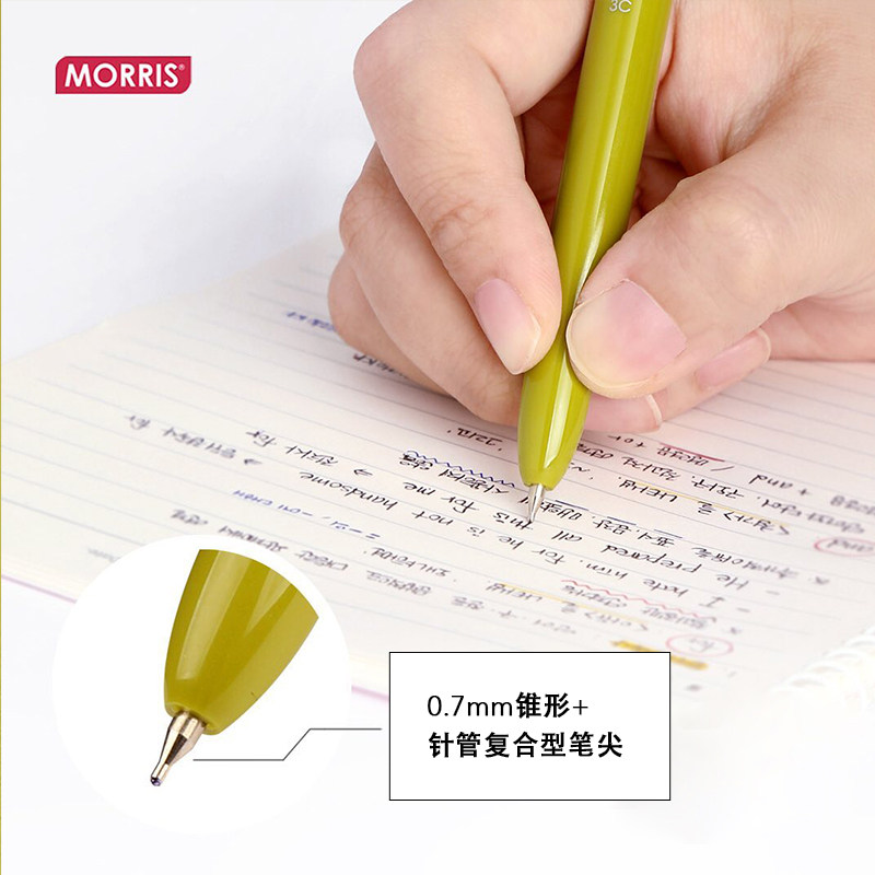 韩国MORRIS STARFLO黑蓝红三色中油笔圆珠笔0.7mm时尚配色树脂笔杆静音按动设计低粘度油墨复合针管笔尖商务