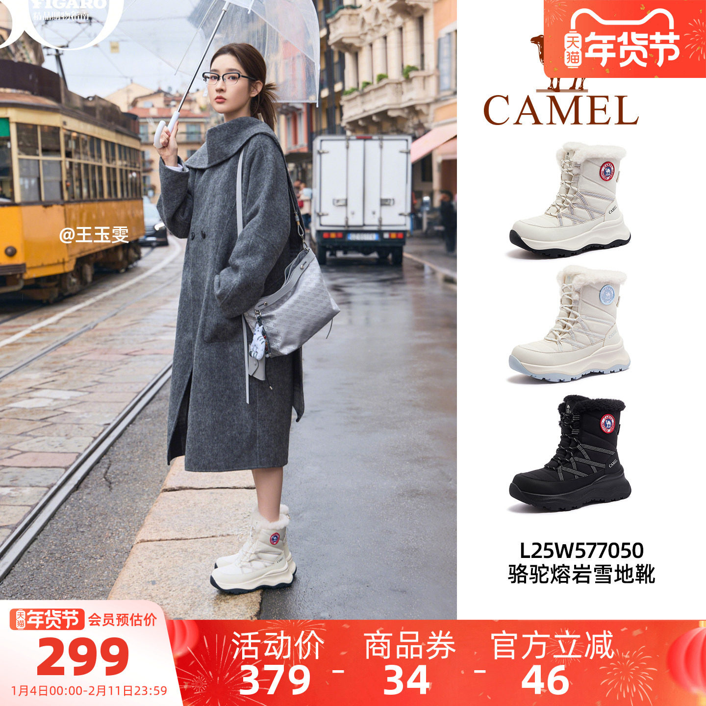 骆驼熔岩雪地靴女鞋2025冬季新款户外短靴女厚底加绒东北保暖棉鞋