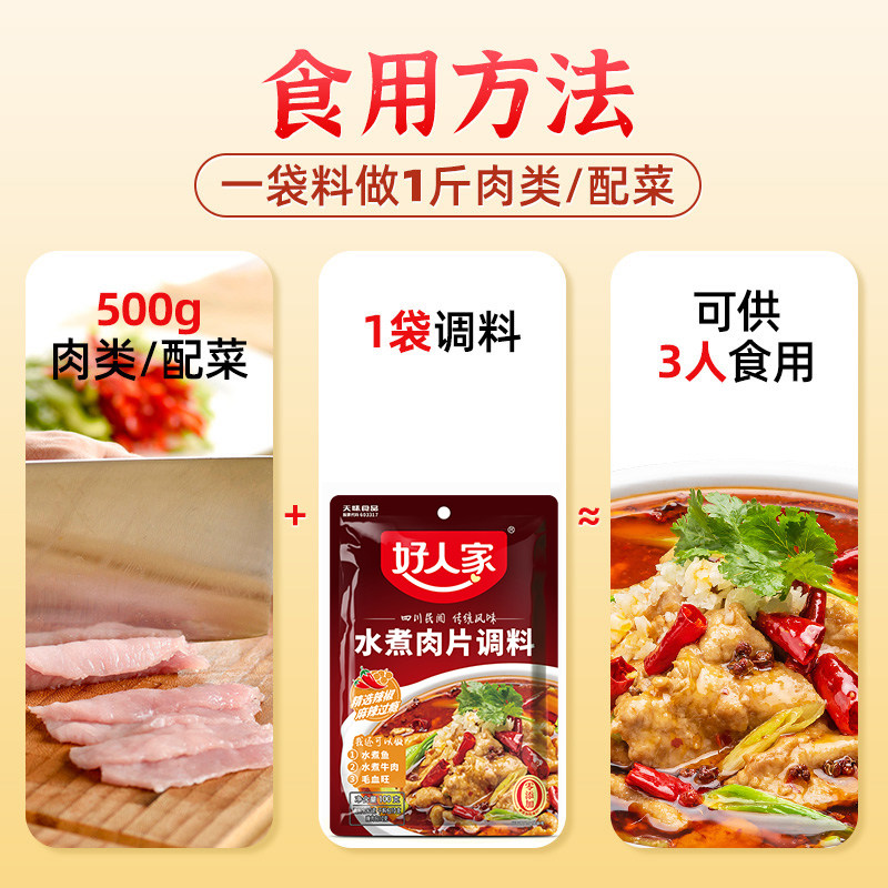 好人家水煮肉片调料100g袋装火锅底料毛血旺水煮鱼调料包麻辣酱料