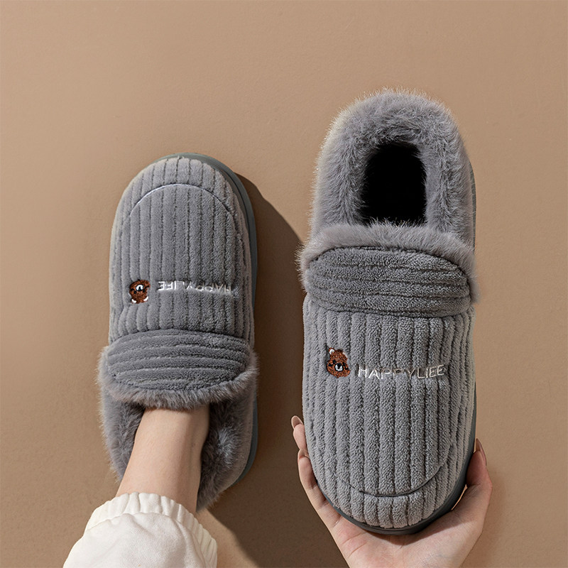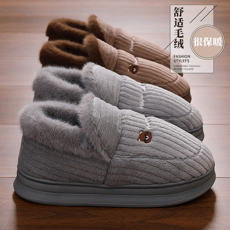 红豆踩屎感棉拖鞋女士秋冬季室内家居2025新款毛绒保暖情侣棉拖男