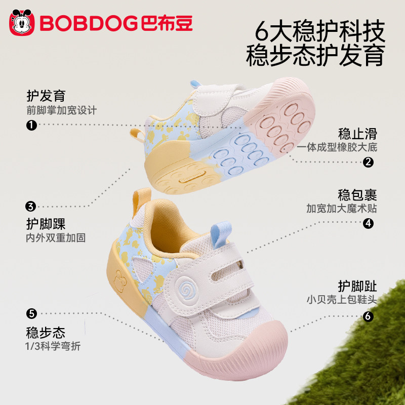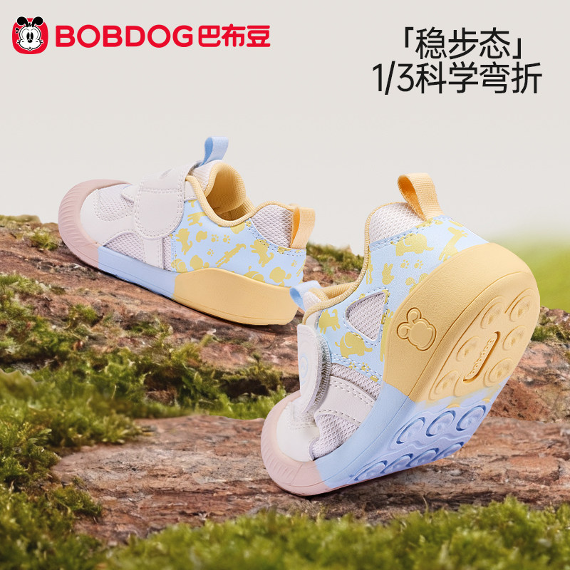巴布豆宝宝学步鞋春季新款婴儿鞋子透气防滑儿童童鞋女宝宝机能鞋