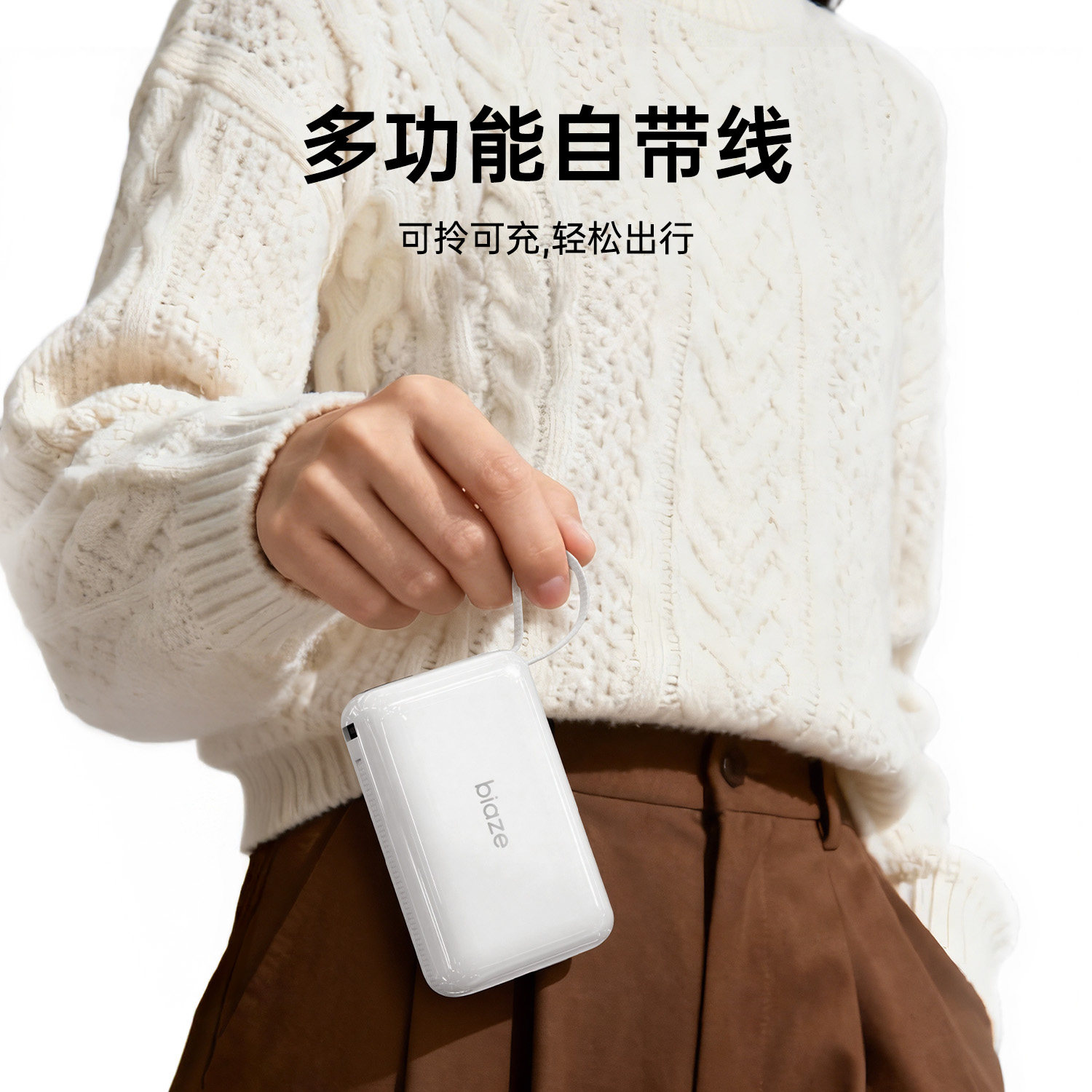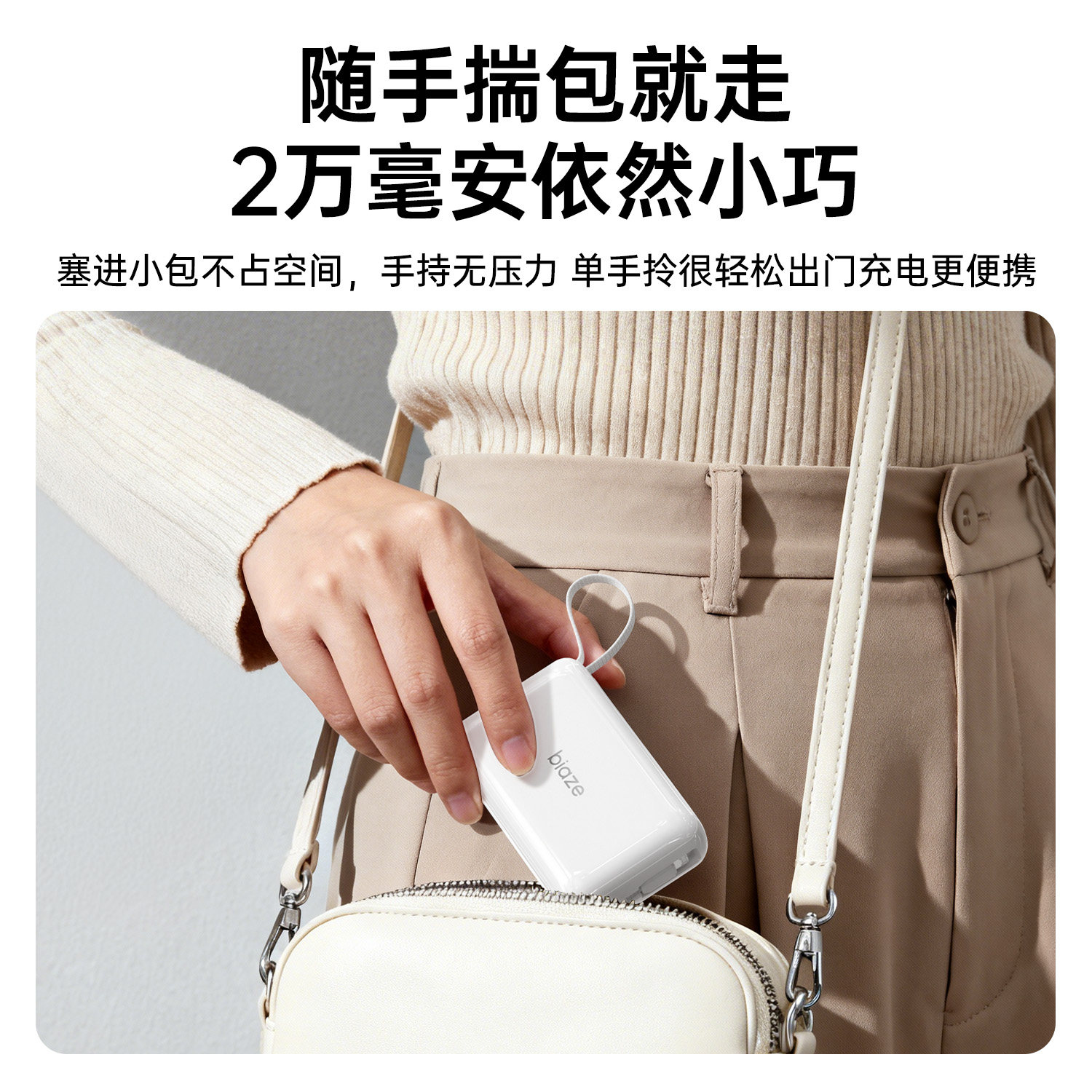 毕亚兹充电宝2026新款大容量20000毫安迷你小巧便携自带线快充移动电源3c认证标识适用小米苹果17可上飞机