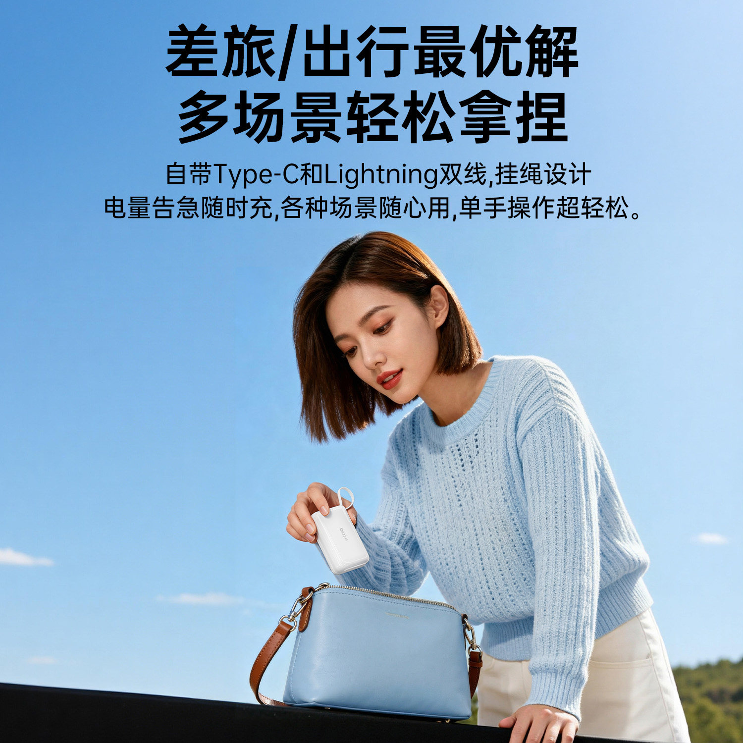 【充电宝3C认证可上飞机】政府补贴15%品胜mini小相机2025新款迷你超薄小巧便携自带线快充适用华为苹果小米