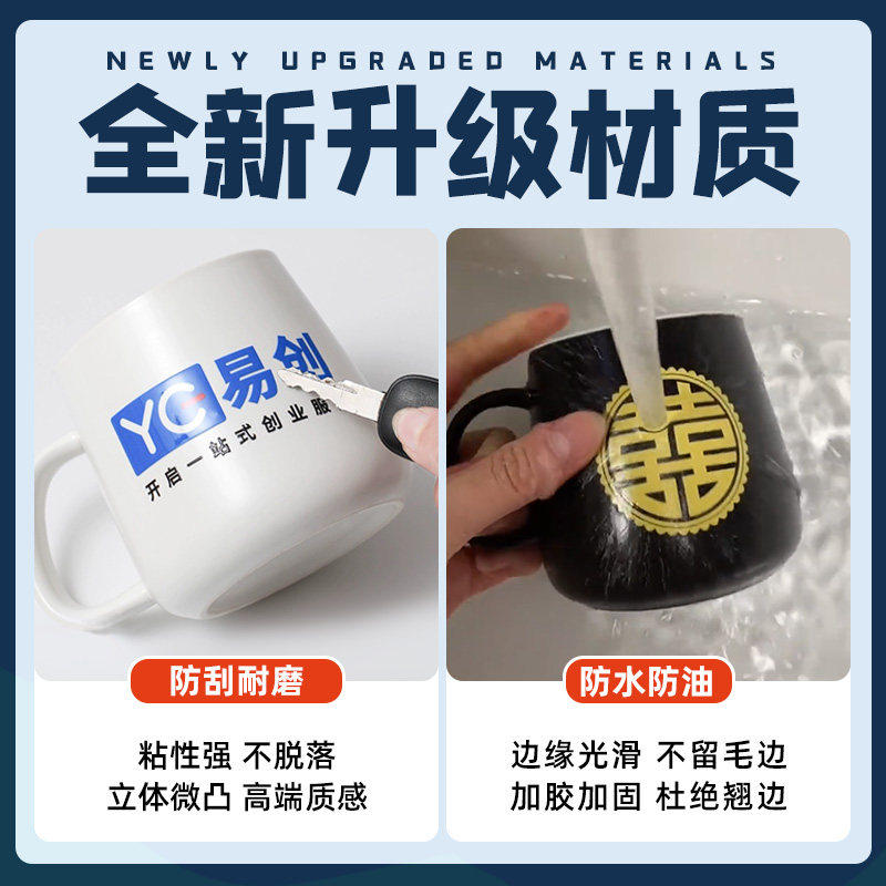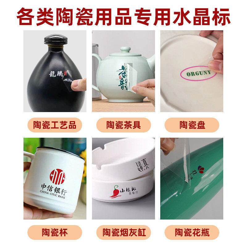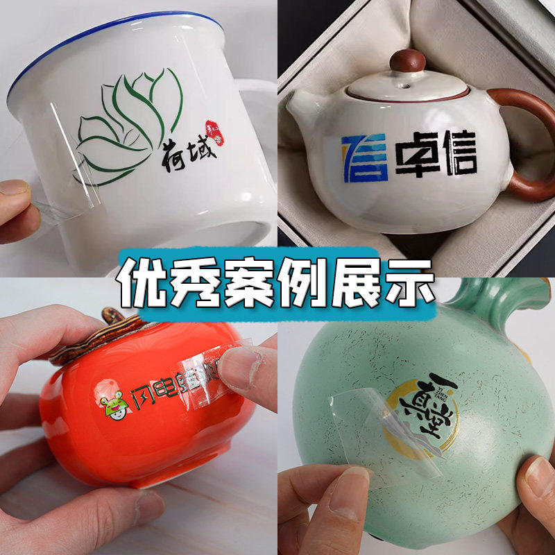 陶瓷罐uv转印贴纸定制logo茶具瓷器马克水杯子立体分离商标签花瓶撕膜留字冷转移丝印防水透明不干胶水晶标贴