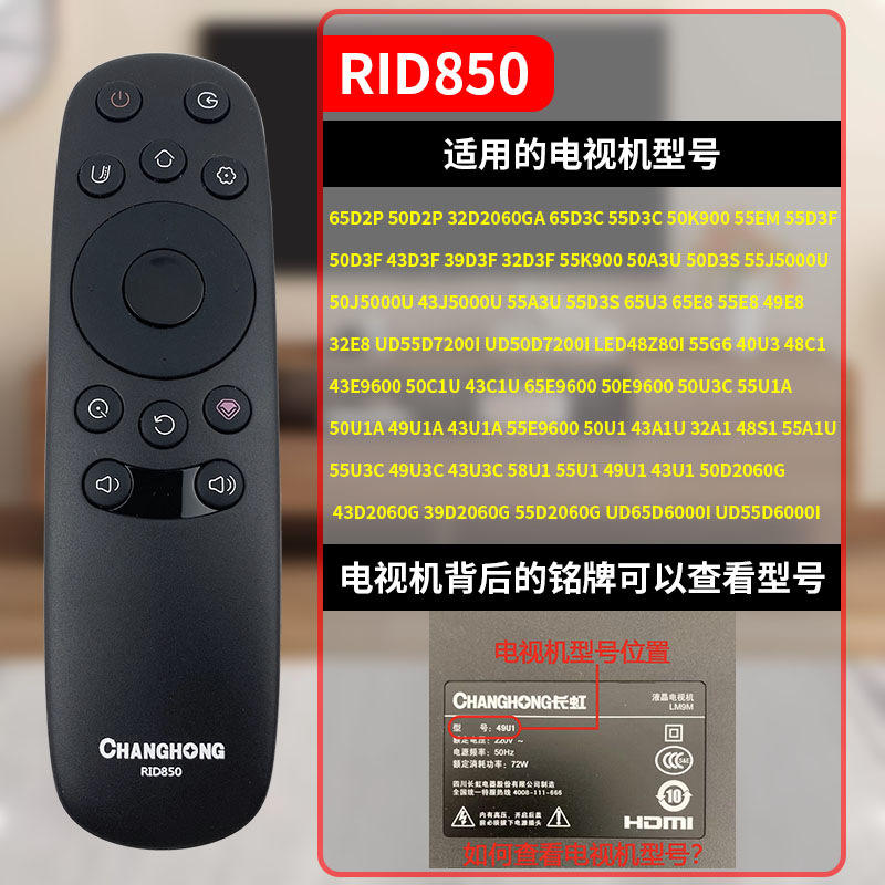 原装正品长虹电视遥控器RID850 39D3F 40U3 49A1U 50U1 55G6 65E8