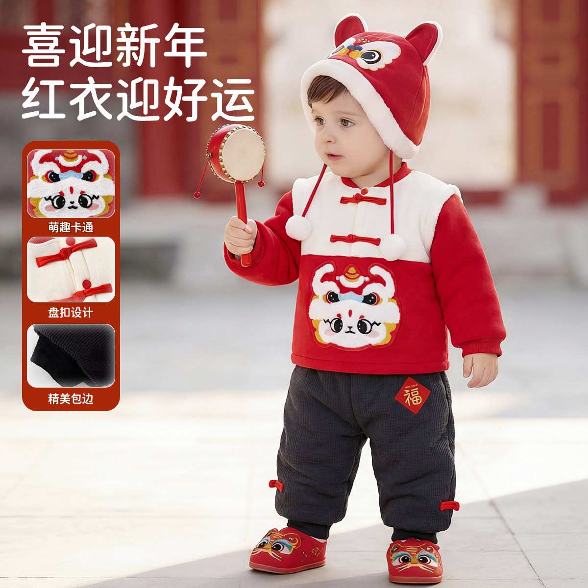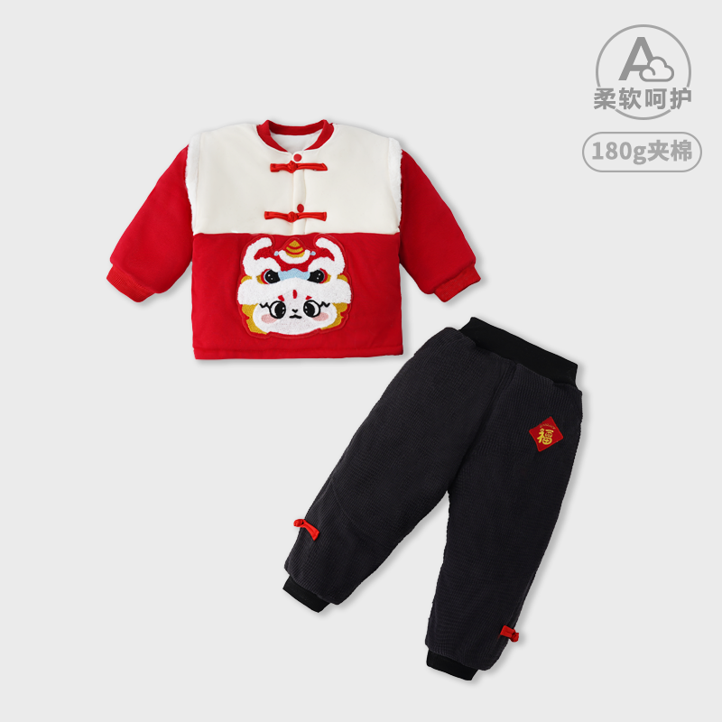 婧麒宝宝拜年服新年套装男童喜庆女童中国风唐装婴儿周岁礼服冬
