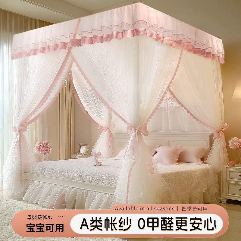 公主风蚊帐家用卧室2025新款落地式免安装支架加厚不锈钢遮光粉色