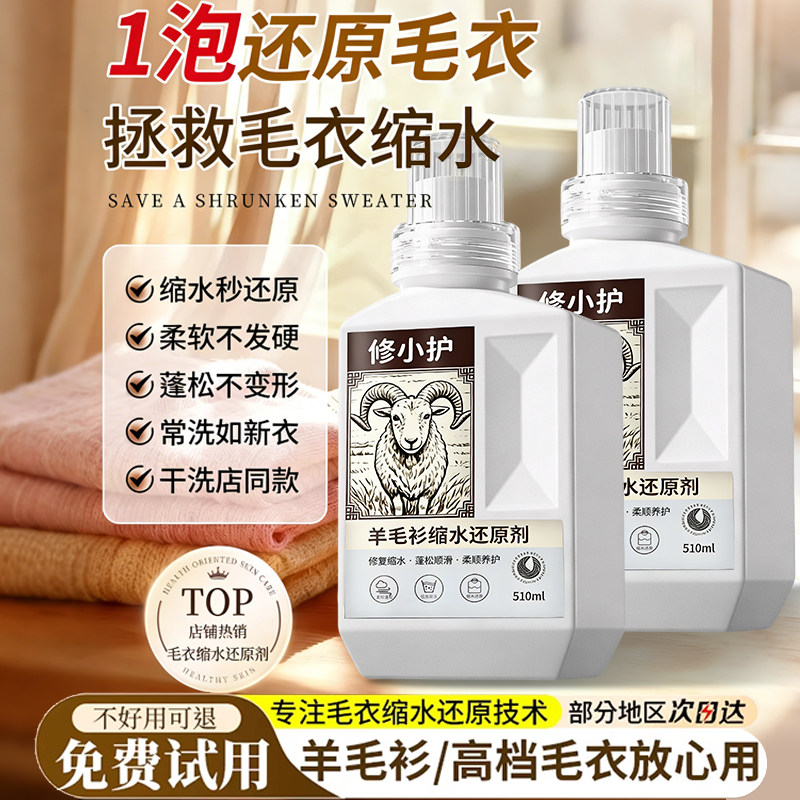 羊毛衫毛衣缩水还原恢复剂第羊绒衫放大蓬松修复洗涤旗舰复原衣物