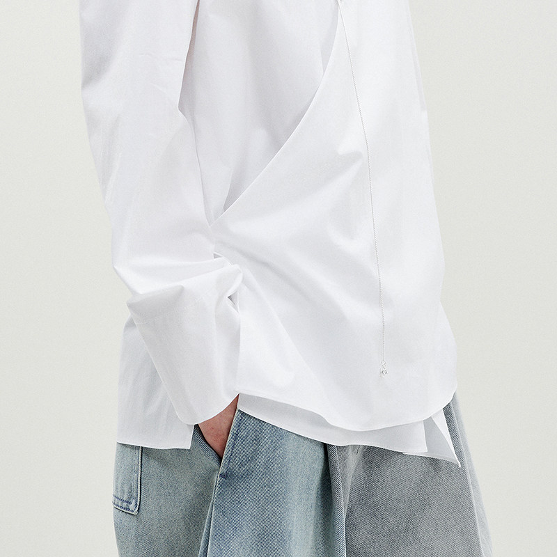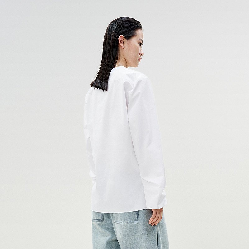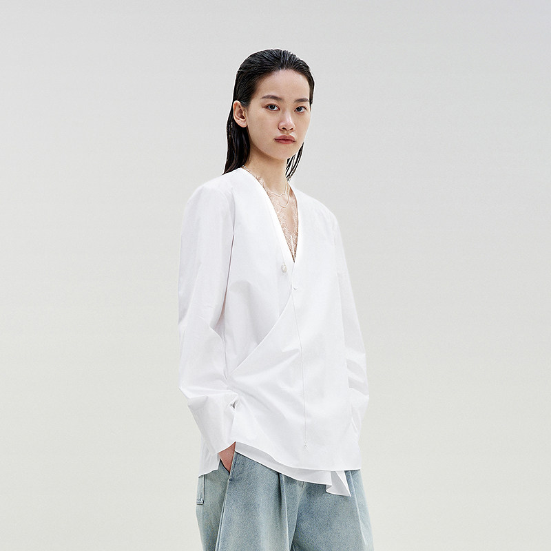 LESS春季蕾丝拼接假两件衬衫女中式围裹设计感府绸衬衣2P1212940