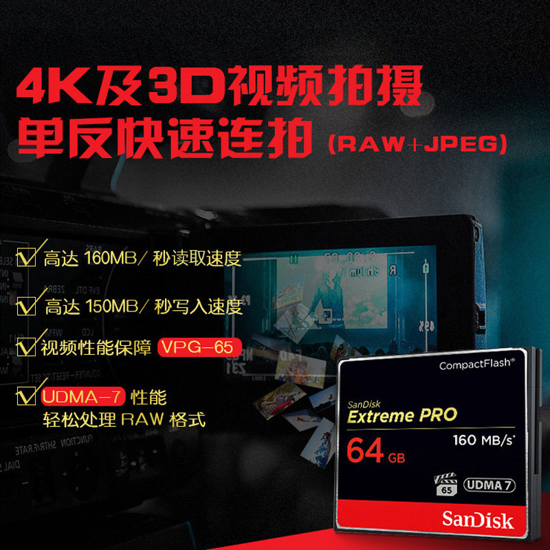 闪迪CF卡单反相机摄像机存储内存卡UDMA 7等级影像卡
