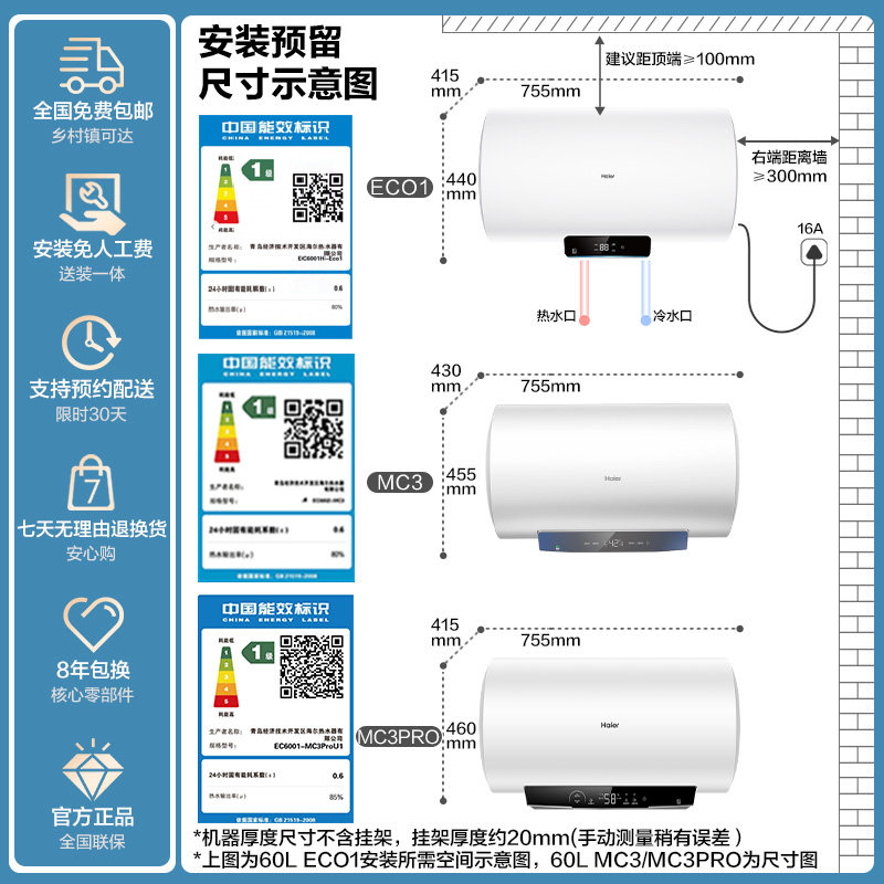 [政府换新补贴]海尔电热水器官方家用洗澡一级能效速热ECO1/MC3