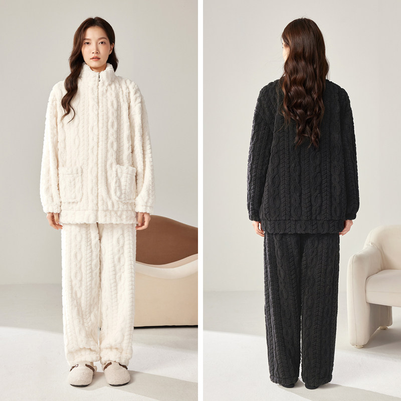 肖战同款猫人暖绒绒家居服半边绒男女2025新款冬季睡衣可外穿加厚