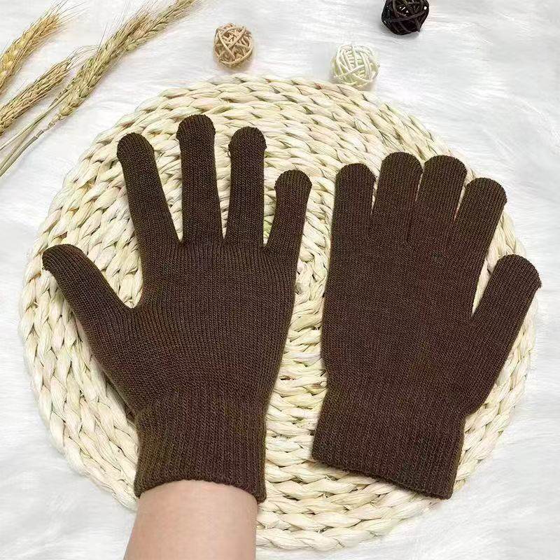 手套女冬季通用加厚拉绒保暖户外骑行加绒黑色针织简约潮流手套
