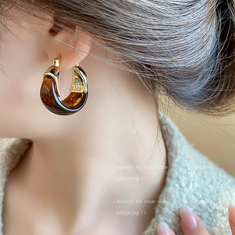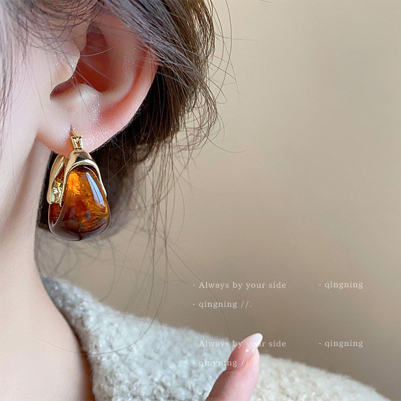 潮上聚美复古琥珀色耳环2026巨好看耳夹无耳洞耳扣美拉德耳饰秋冬