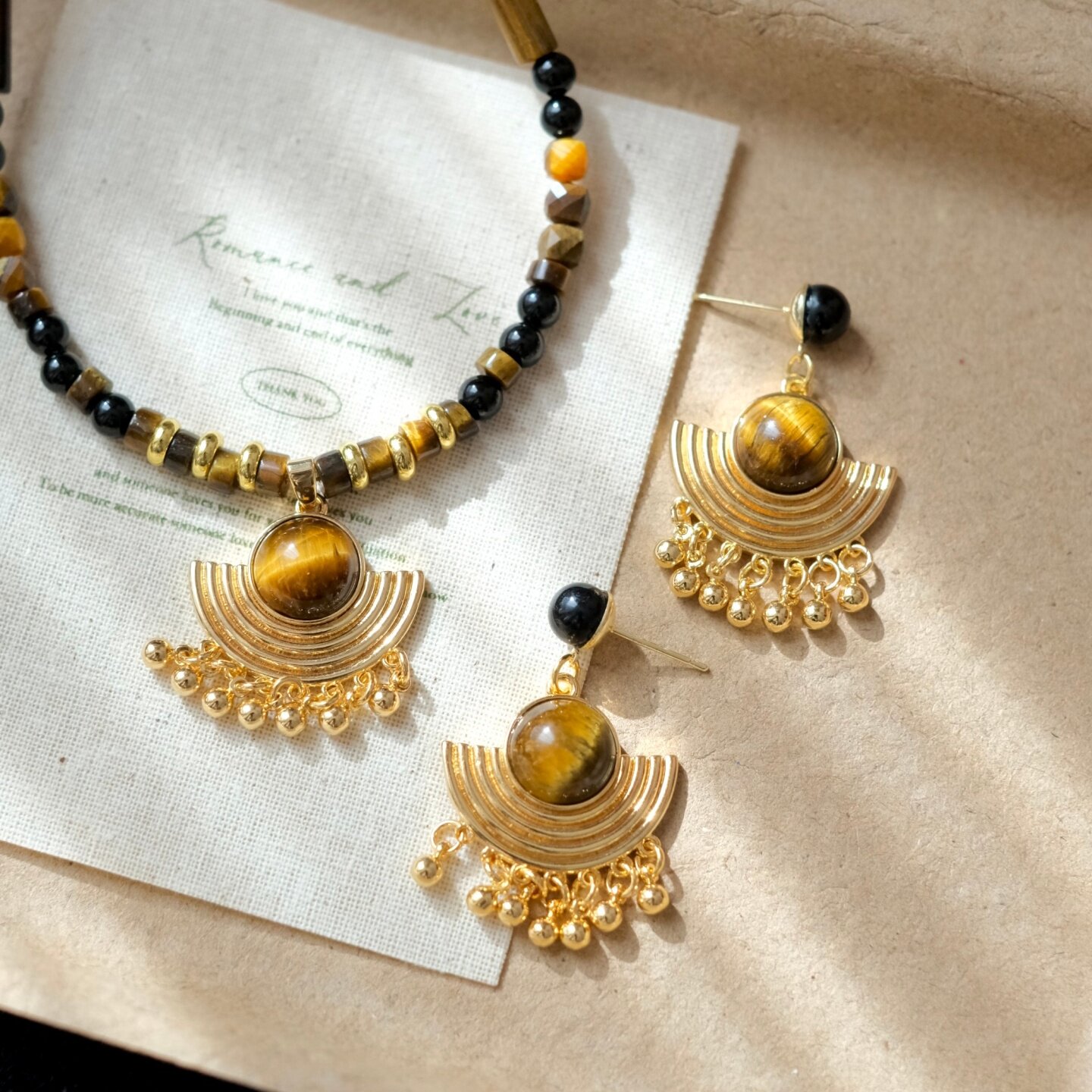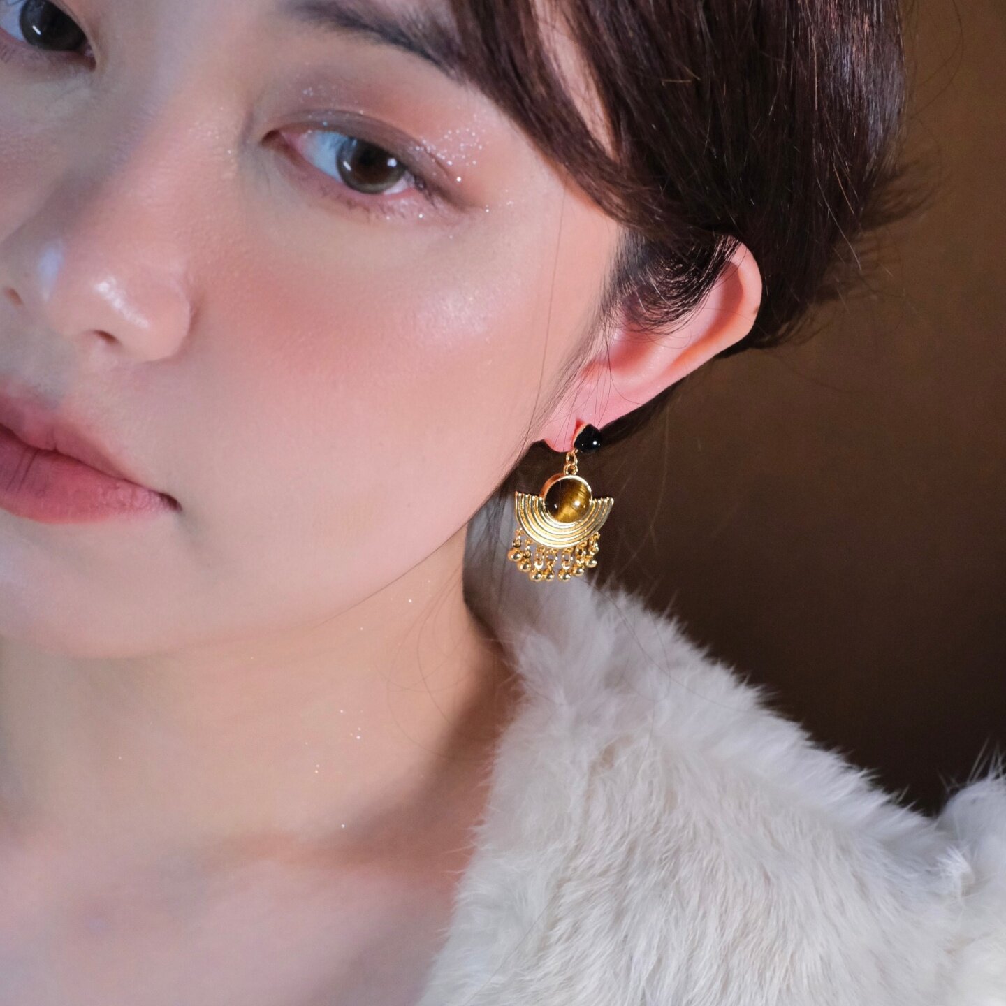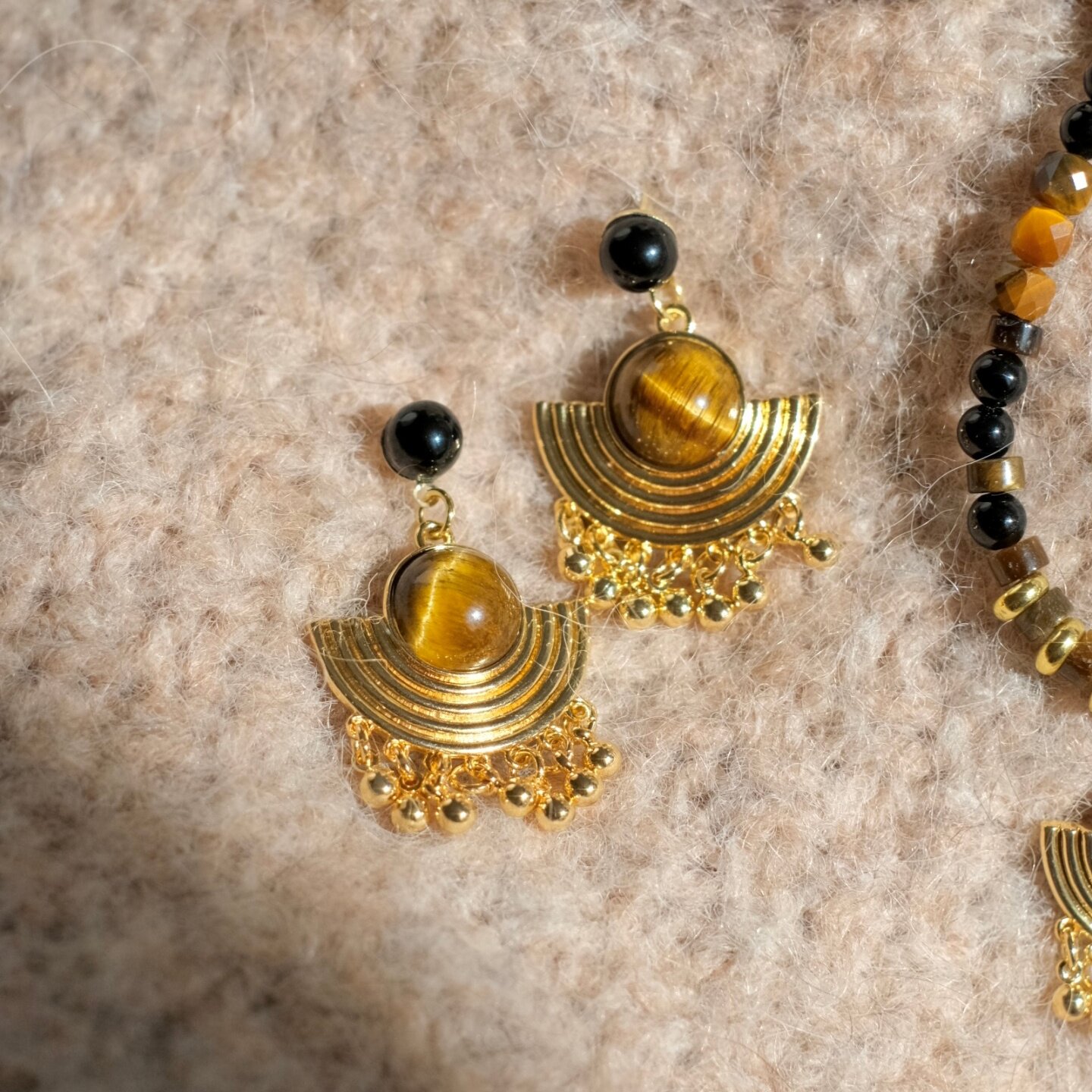 《吟游诗人》原创复古小众民族风几何流苏虎眼石耳饰耳钉耳环耳夹
