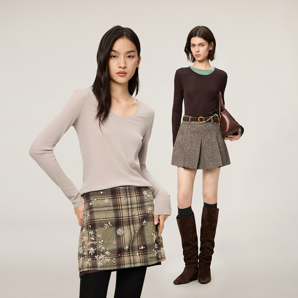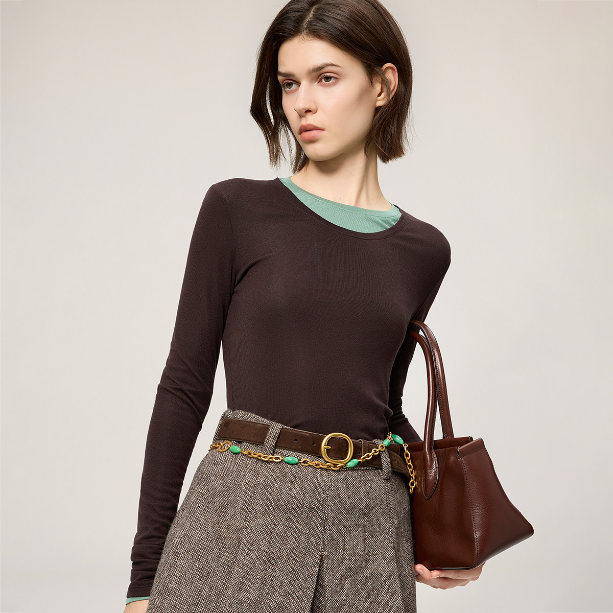 【新品】OCHIRLY欧时力100%长绒棉U领T恤长袖上衣内搭外穿2026春