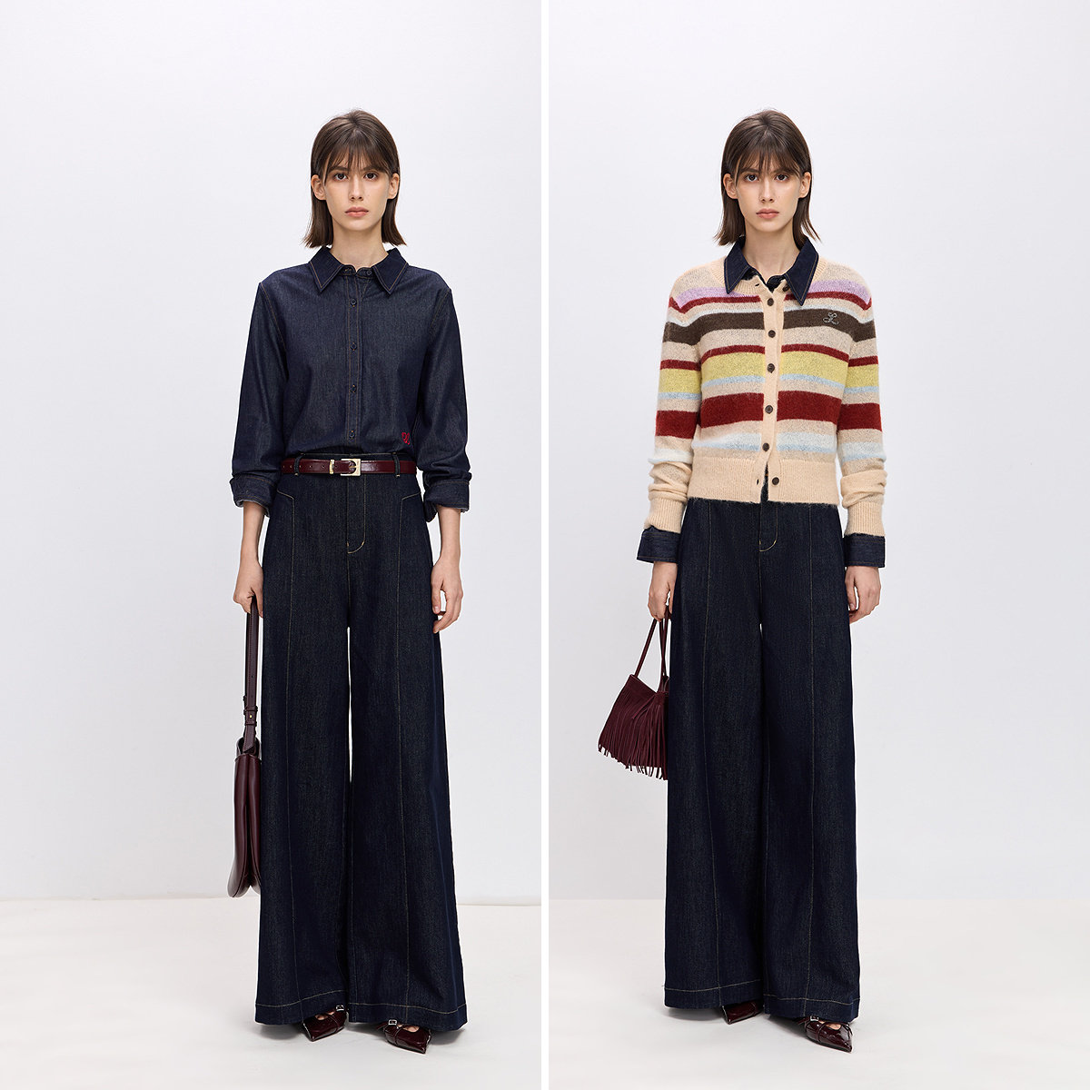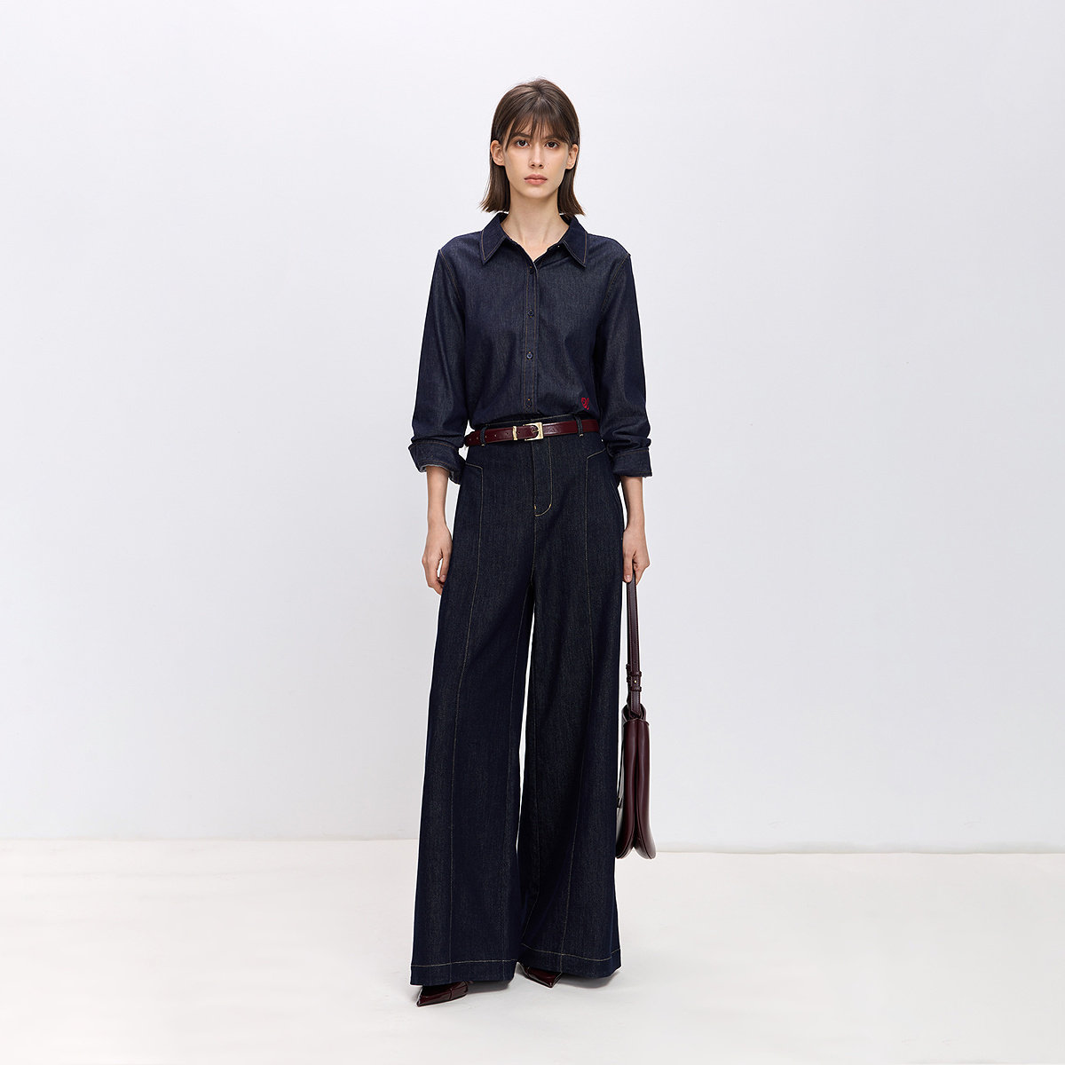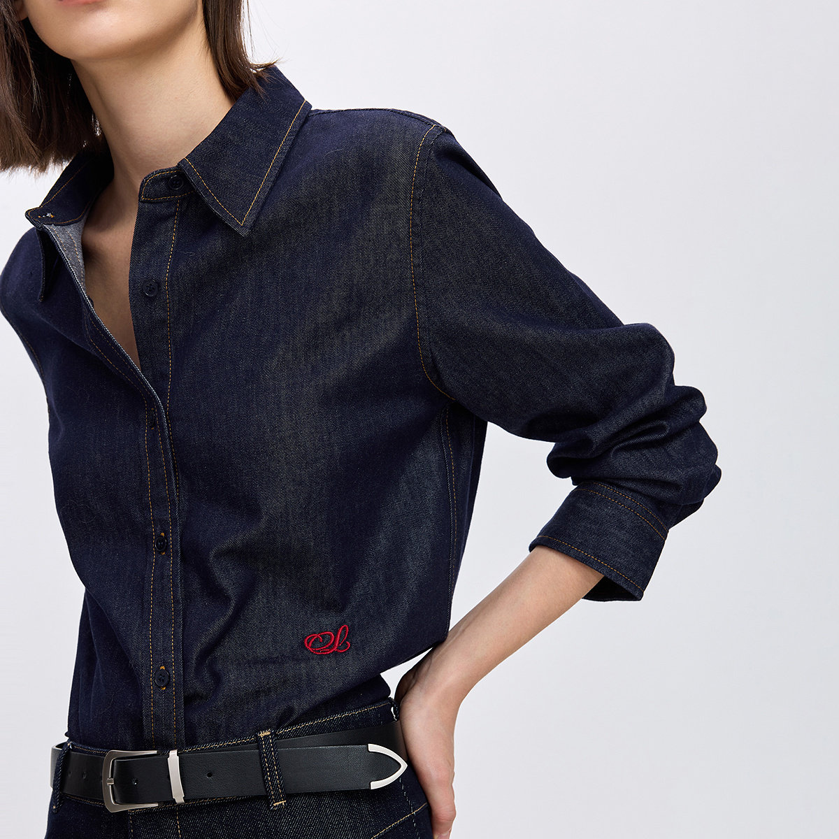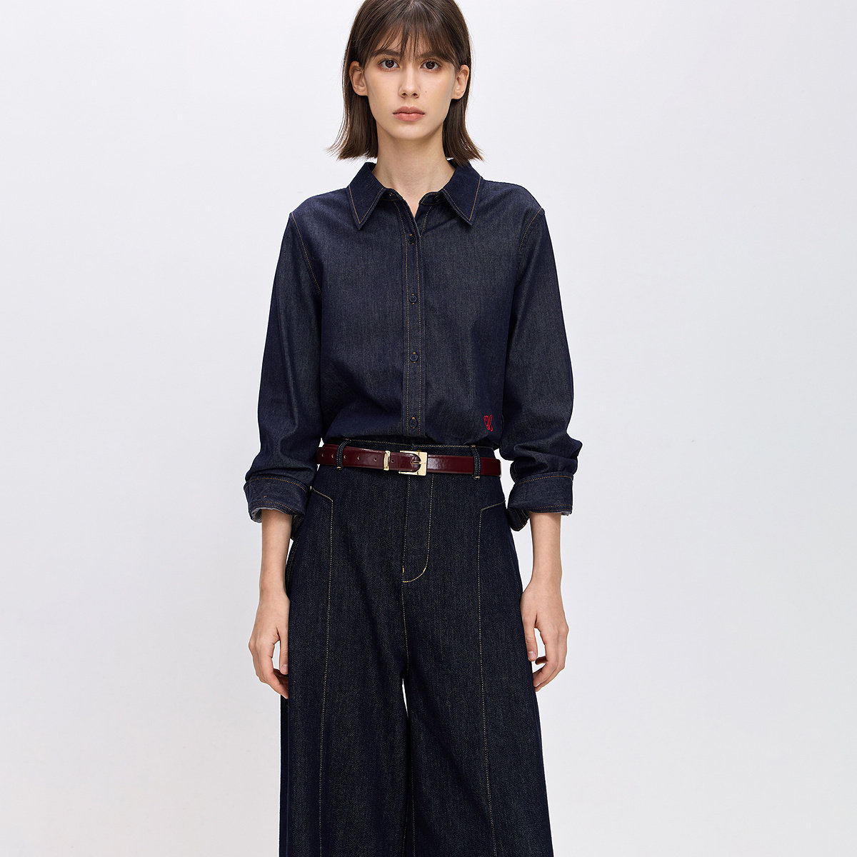LILY2026春新款含醋酸莱赛尔复古翻领休闲通勤上衣牛仔衬衫外套女