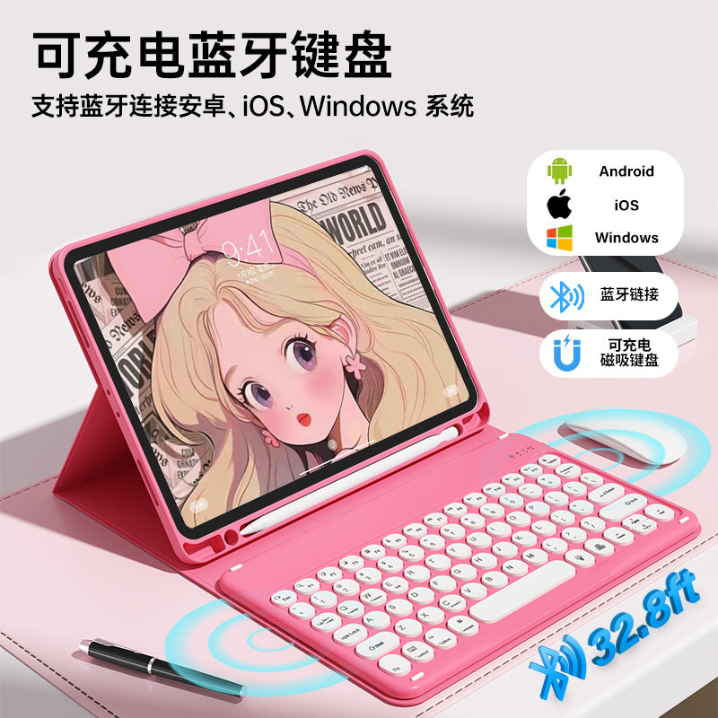 iPad保护套带键盘一体iPad11蓝牙键盘10代超薄2025苹果Air7平板全包防摔air6磁吸拆分air5/4带笔槽西瓜红支架
