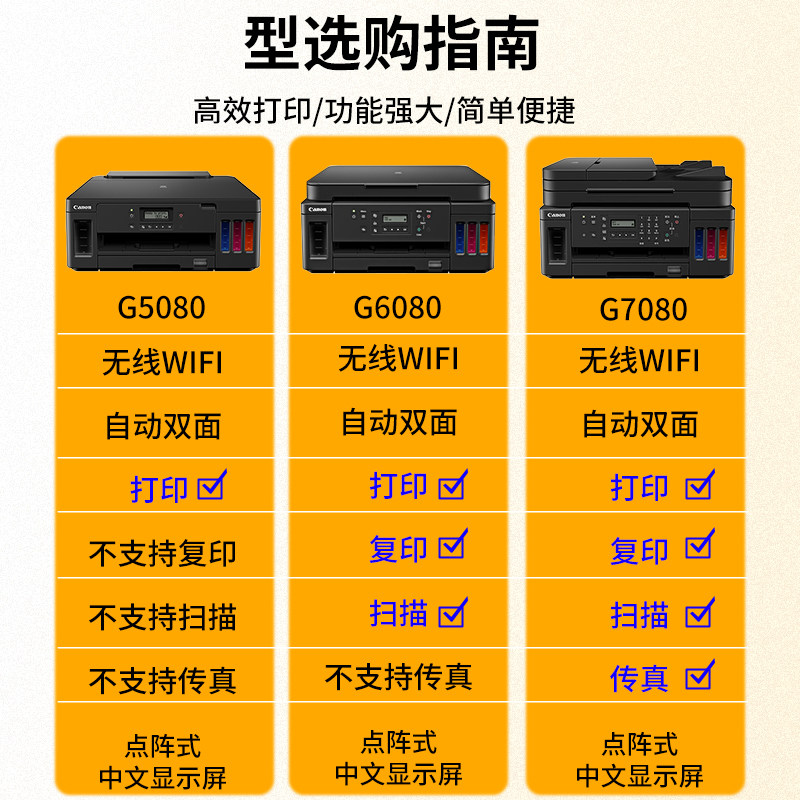 佳能G6080 7080墨仓连供式彩色手机双面打印复印扫描一体机G5080