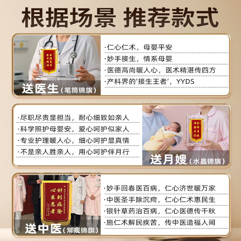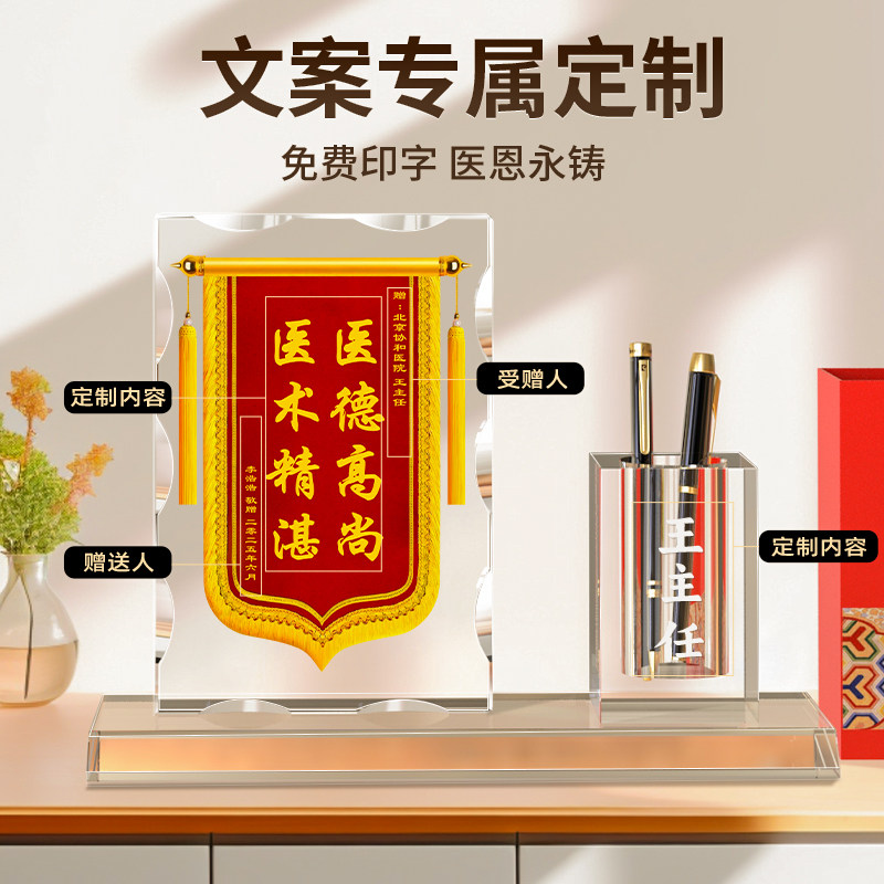 锦旗定制感谢医生赠送护士妇产科医护人员儿科中医月嫂幼儿园老师礼物定做服务旗帜高档旌旗订做水晶摆台制作