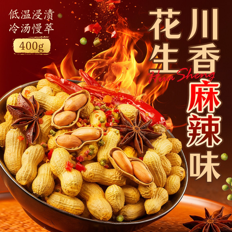 洽洽慢烤花生川香麻辣味花生400g下酒菜恰恰花生带壳休闲零食