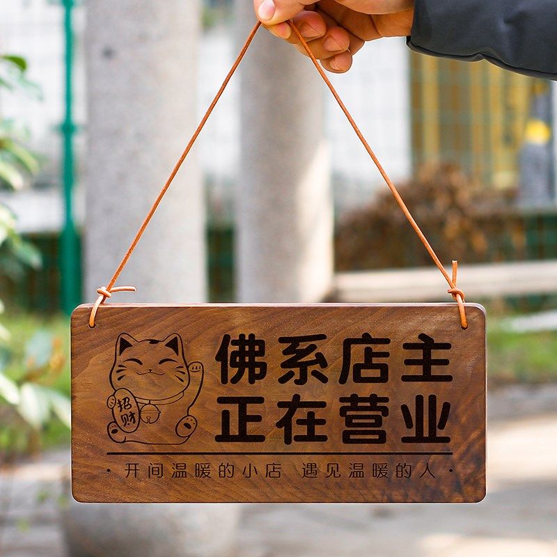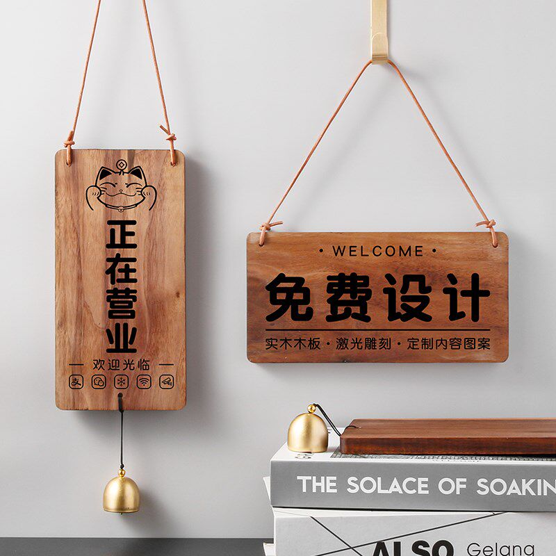 黑胡桃实木雕刻木牌定制刻字正在营业挂牌休息中打烊营业时间门牌