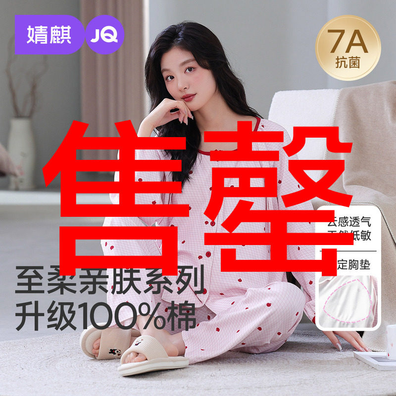 婧麒孕妇睡衣月子服纯棉产后十月份带胸垫哺乳喂奶待产家居服套装