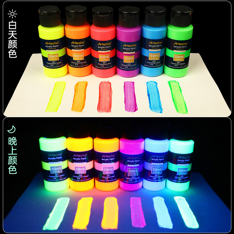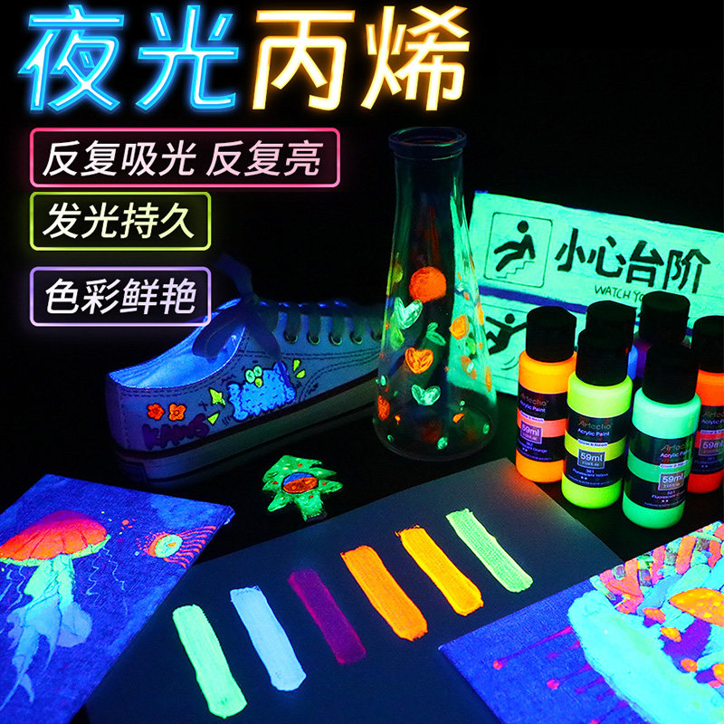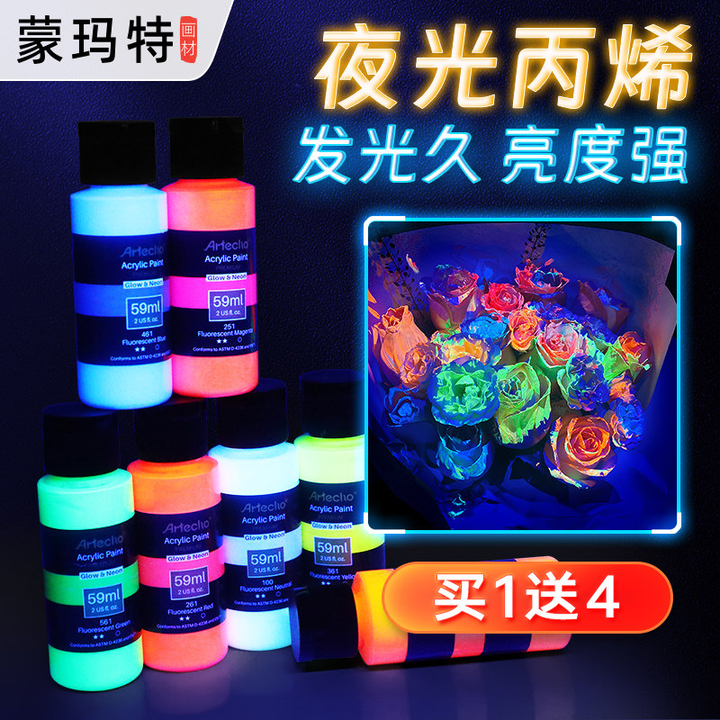 蒙玛特夜光丙烯颜料高达模型上色夜光漆手绘涂鸦DIY创作荧光发光涂料衣服鞋子墙绘纺织染料荧光液丙烯画专用