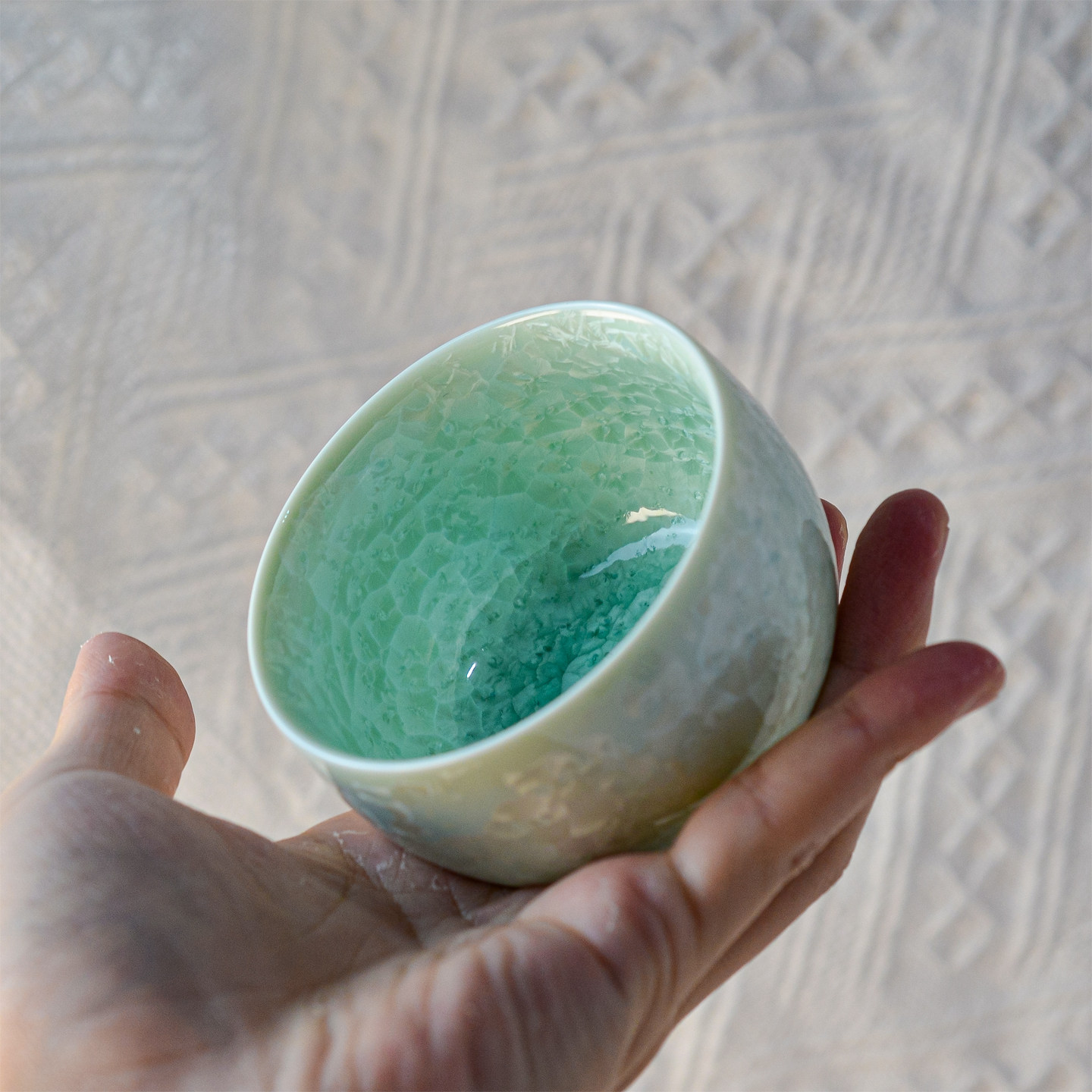 窑变结晶釉绿冰晶罗汉杯主人杯茶杯个人专用品茗杯陶瓷功夫茶具礼