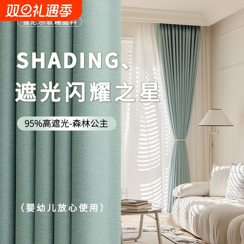 窗帘全遮光布客厅卧室2025新款加厚防晒遮阳帘出租房挂钩窗帘成品