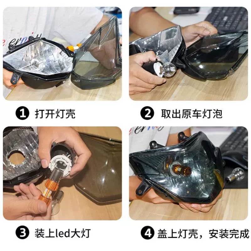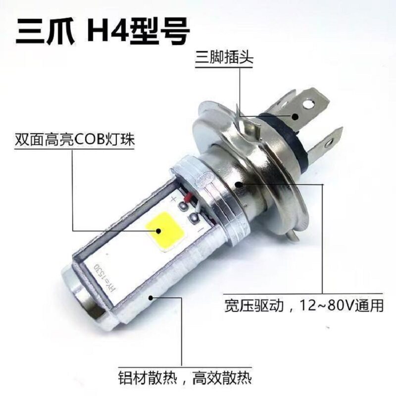 电动车灯摩托车led大灯超亮远近光一体内置前大灯改装双爪三爪