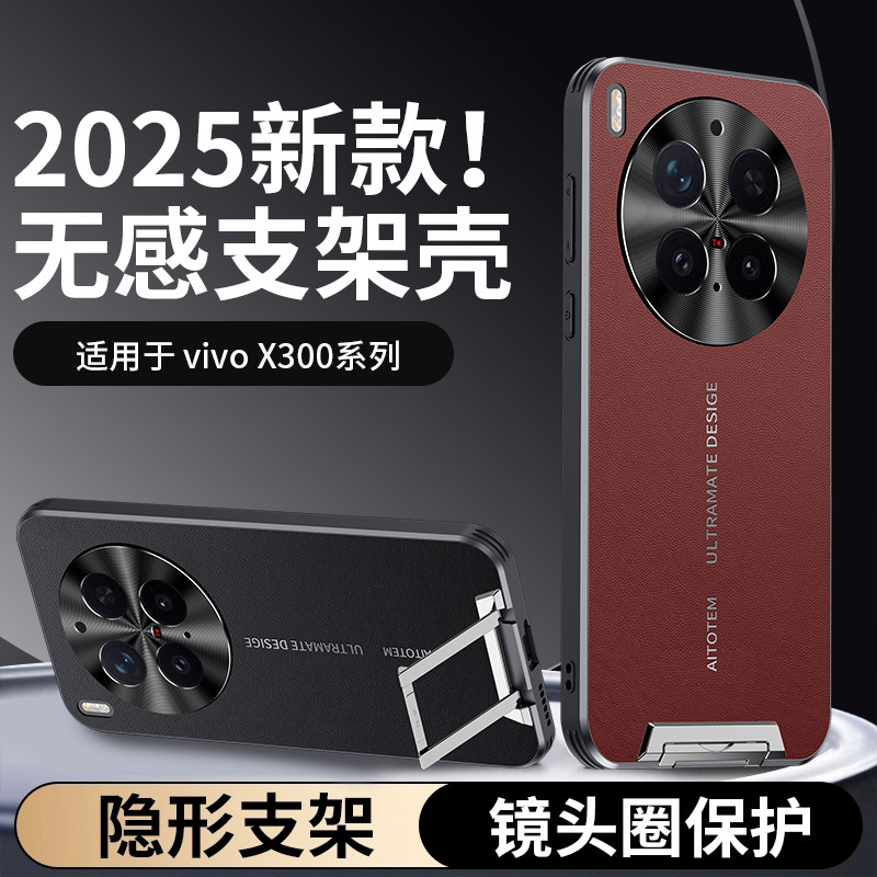 适用于vivo x300手机壳拉杆支架v2502da保护套吸磁vivi x300pro全包x3oo超薄防摔无线充x300 pro软素皮