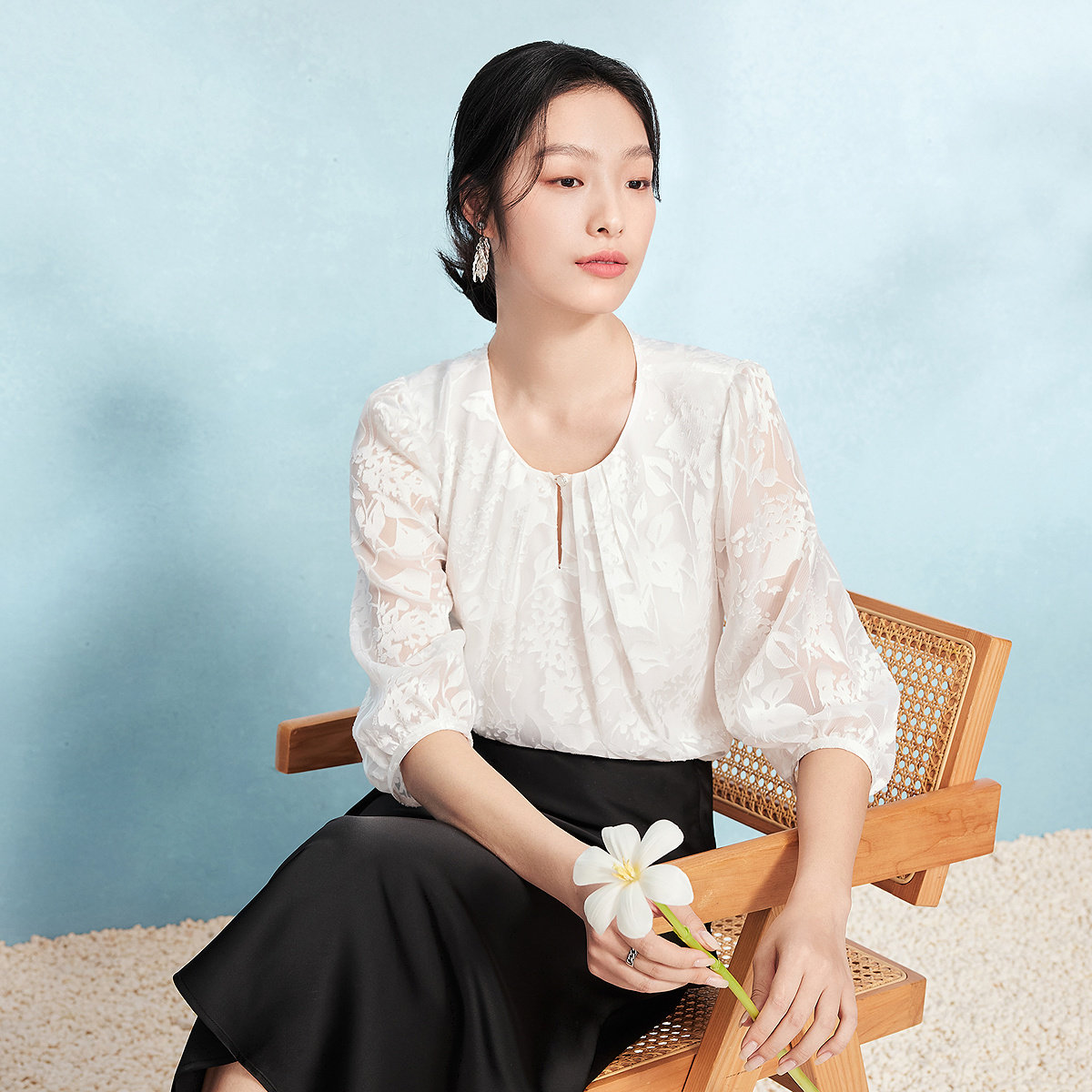 FINITY菲妮迪雪纺衫2025秋季新款领口捏褶设计气质上衣女