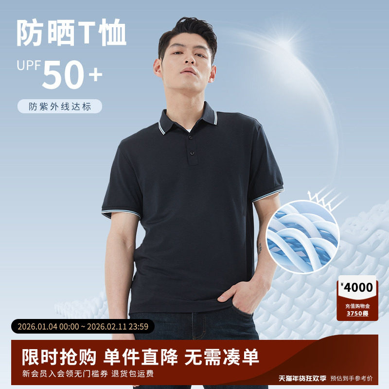 杉杉男士短袖t恤翻领2025夏季新款桑蚕丝休闲防晒轻薄polo衫男款