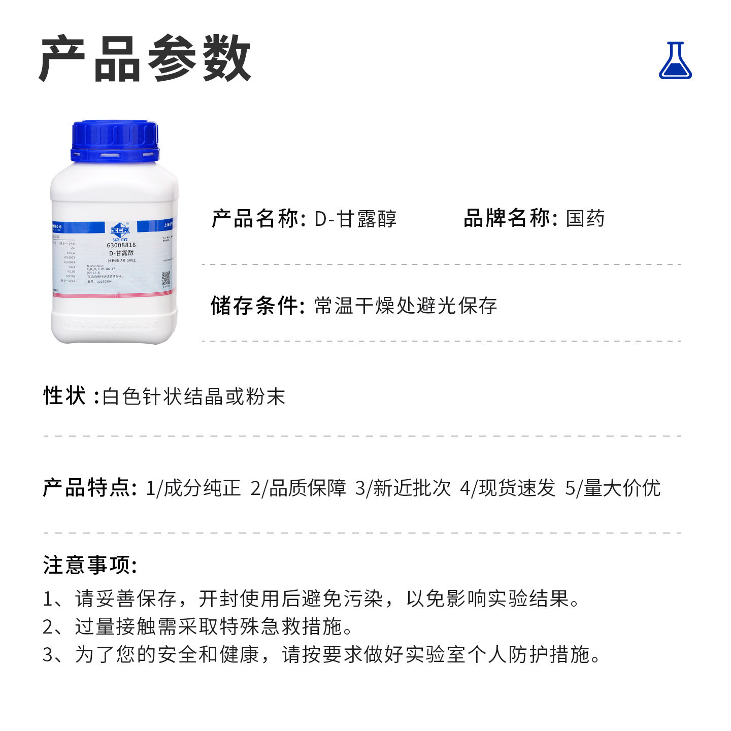 国药D-甘露醇 分析纯AR渗透压调节剂培养基化学实验室用添加剂试剂 100/500g