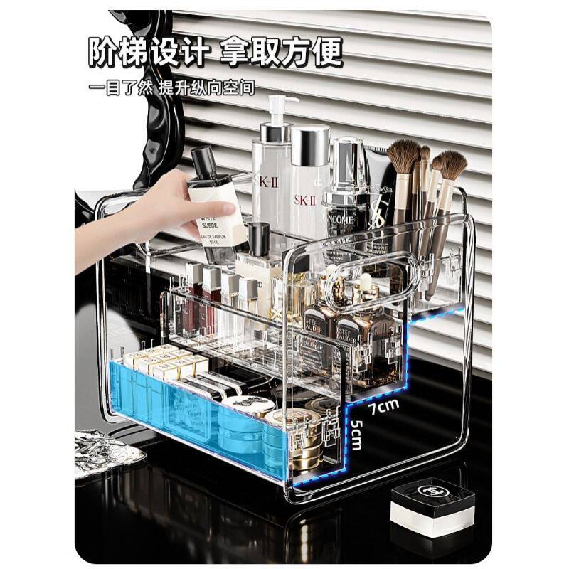 化妆品收纳盒桌面透明亚克力梳妆台阶梯多层护肤品香水置物架口红
