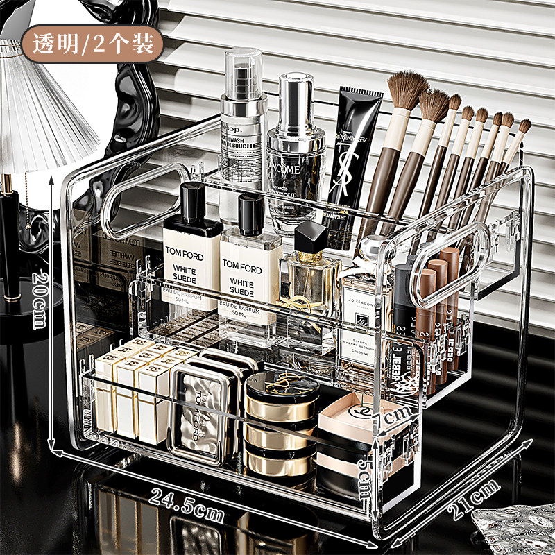 面膜收纳盒亚克力梳妆台透明分格盒桌面化妆品大容量护肤品置物架