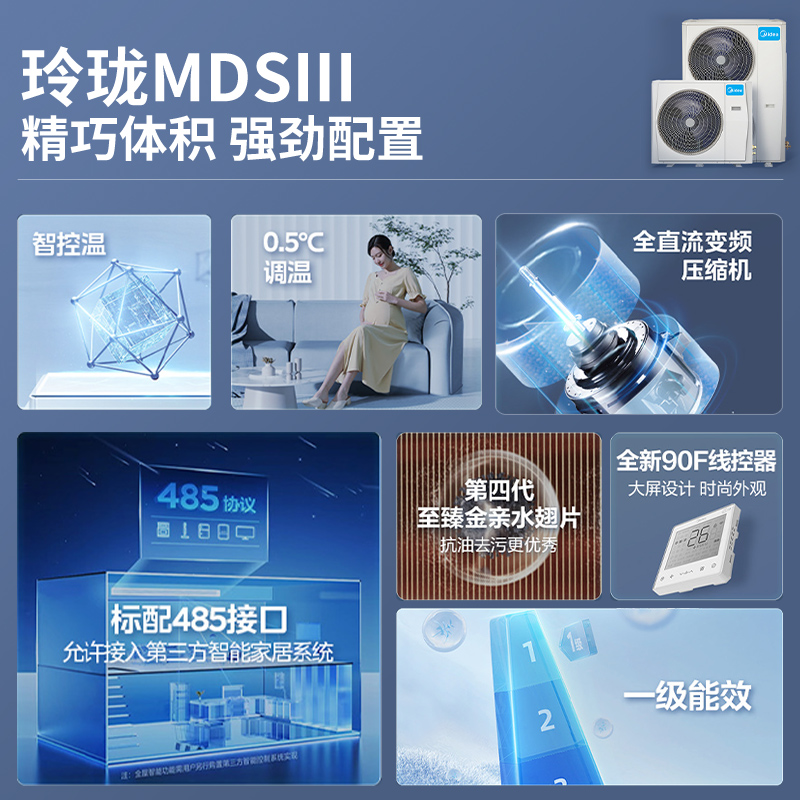 美的中央空调家用星光多联机一拖四一级能效变频全屋智能玲珑MDS3