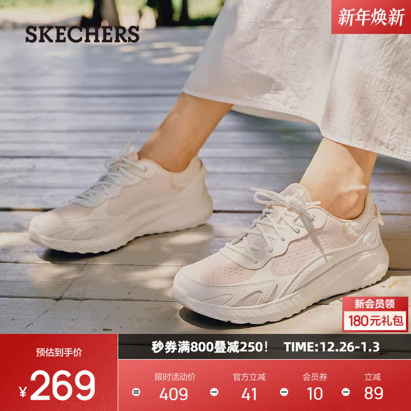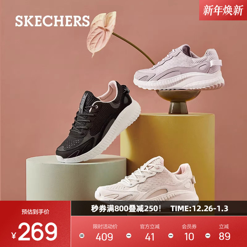 斯凯奇女鞋新款棉花糖舒适运动鞋厚底减震妈妈鞋百搭小白鞋轻便