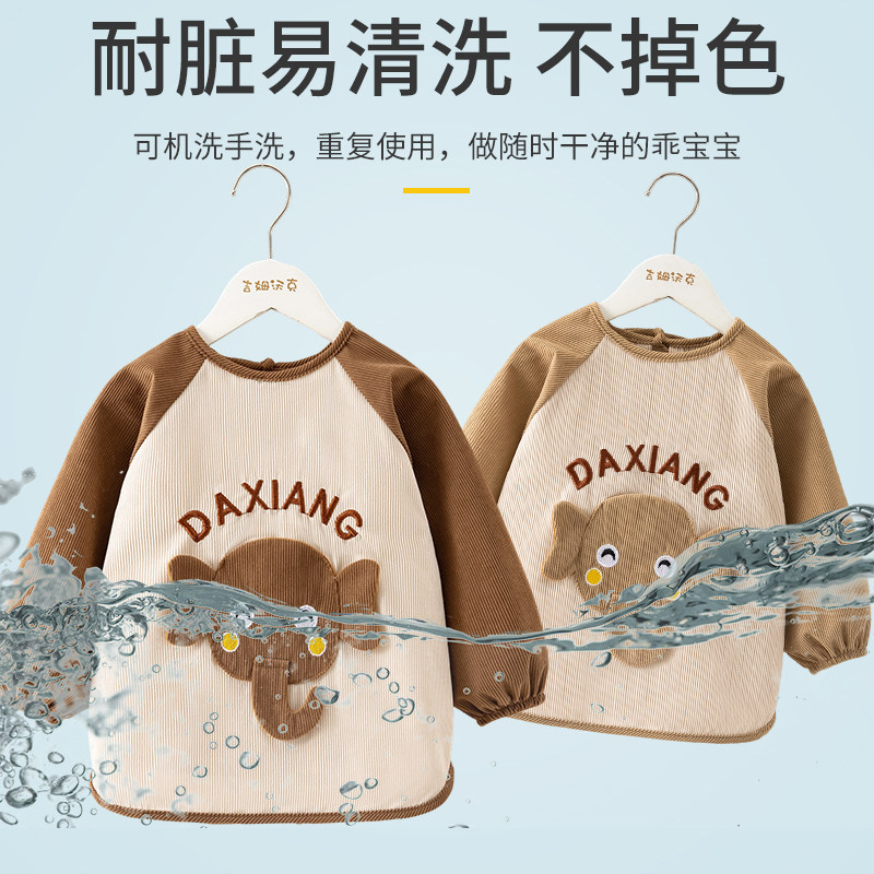 宝宝罩衣灯芯绒秋冬儿童围兜外穿洋气男宝吃饭护衣女婴儿防水防脏