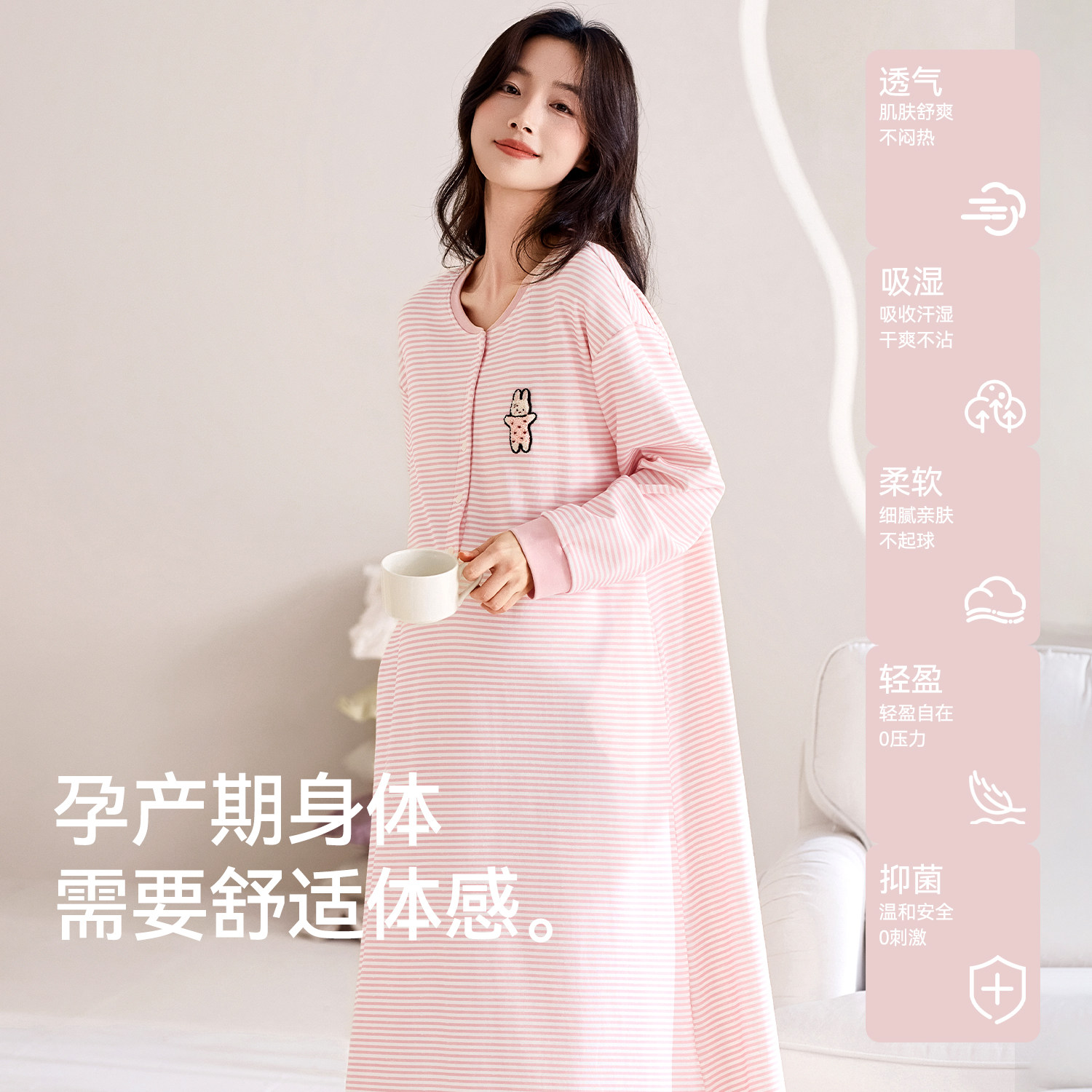 都市丽人2026新款带胸垫100%纯棉月子服抑菌吸汗睡衣孕妇甜美睡裙