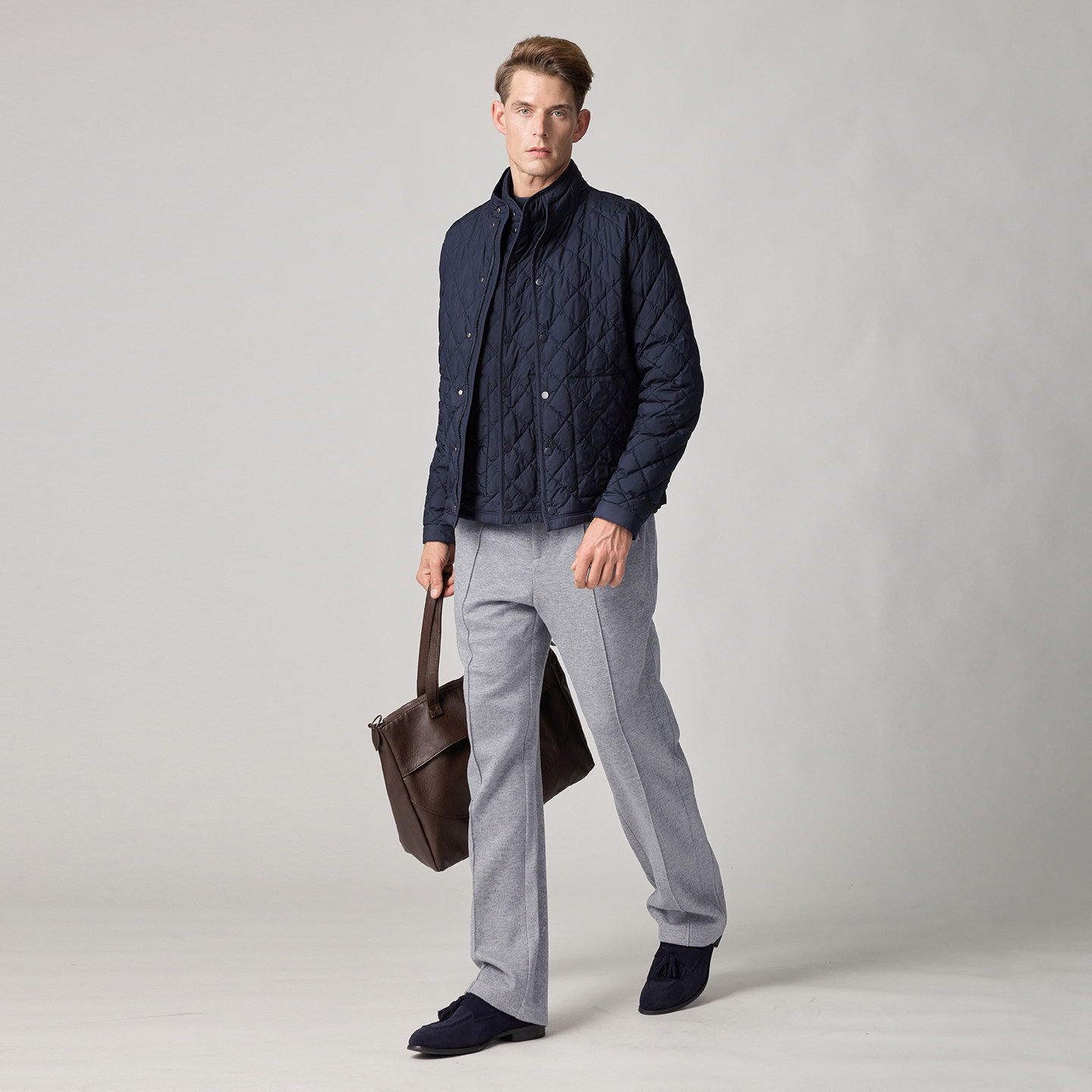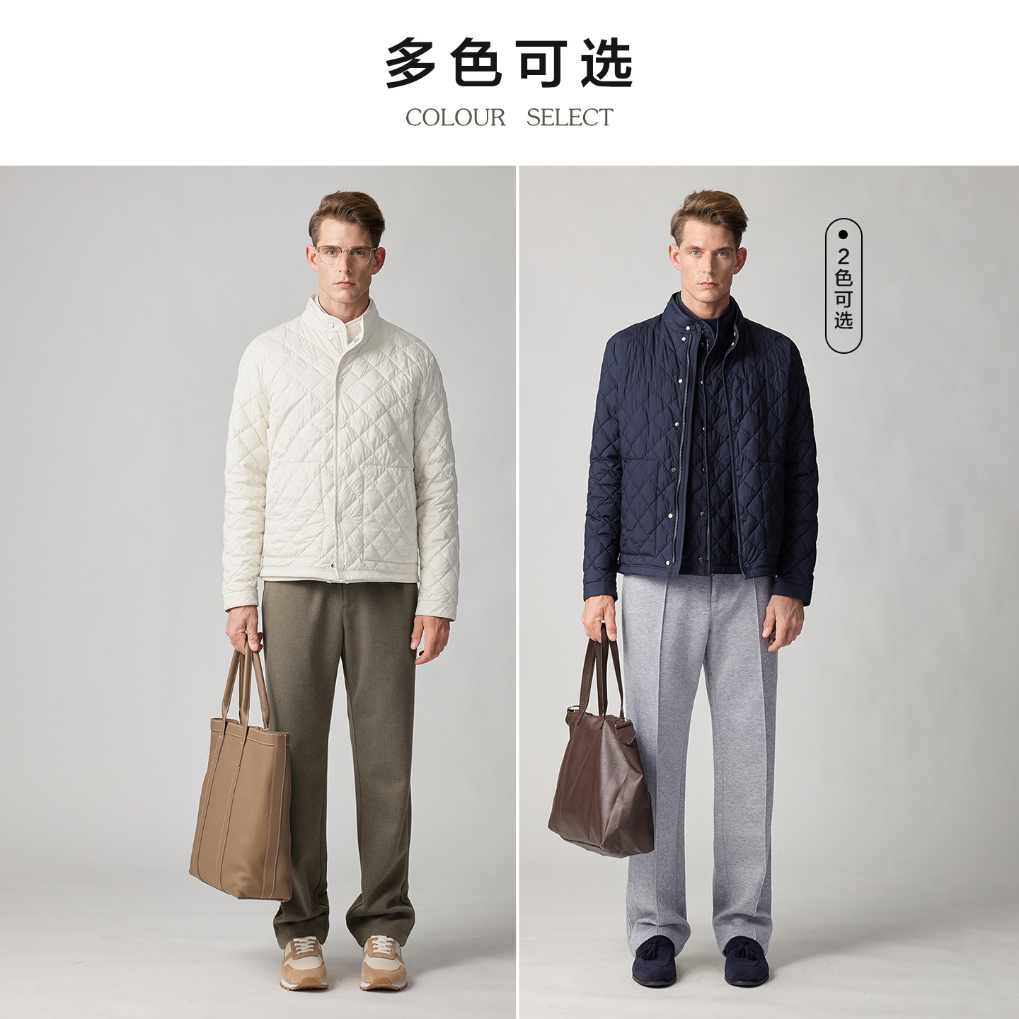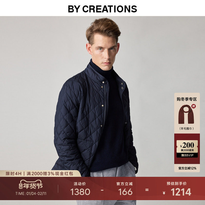 柏品菱格绗线白鹅绒羽绒服男款2025冬季新品商务防风保暖冬装外套