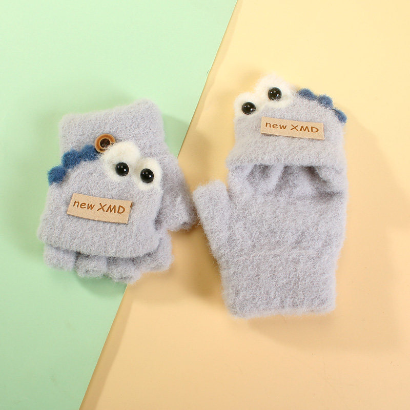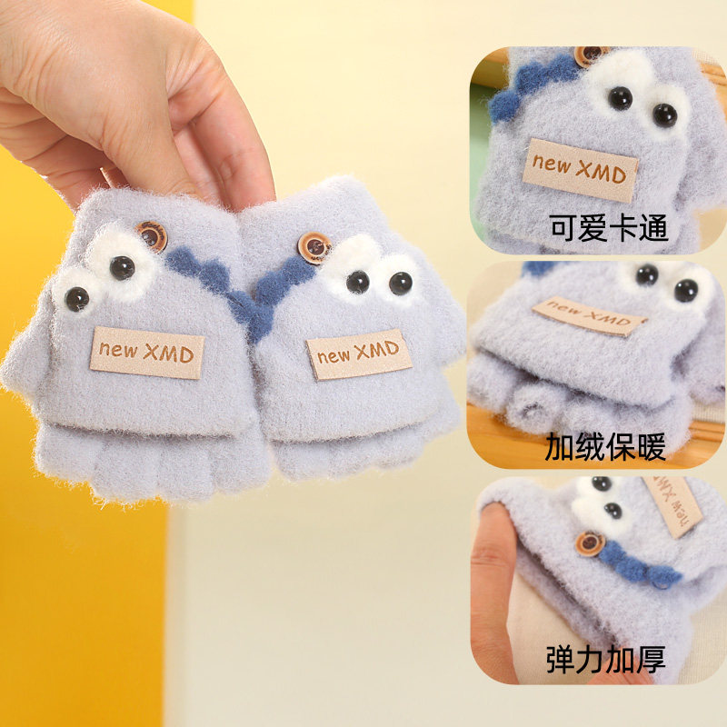 儿童手套男童秋冬季保暖写字翻盖小男孩小学生半指写作业大童冬天