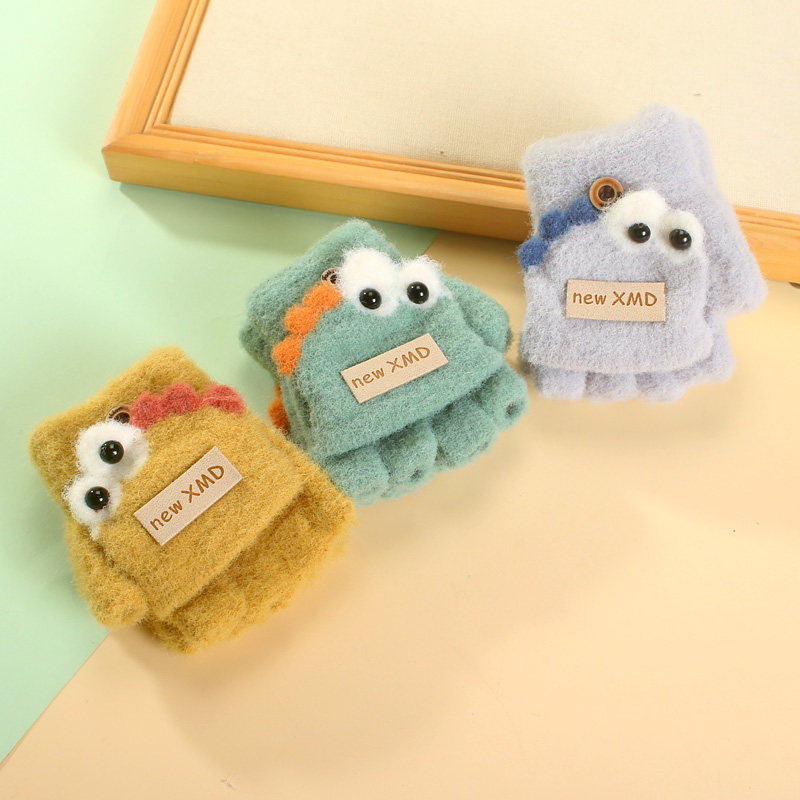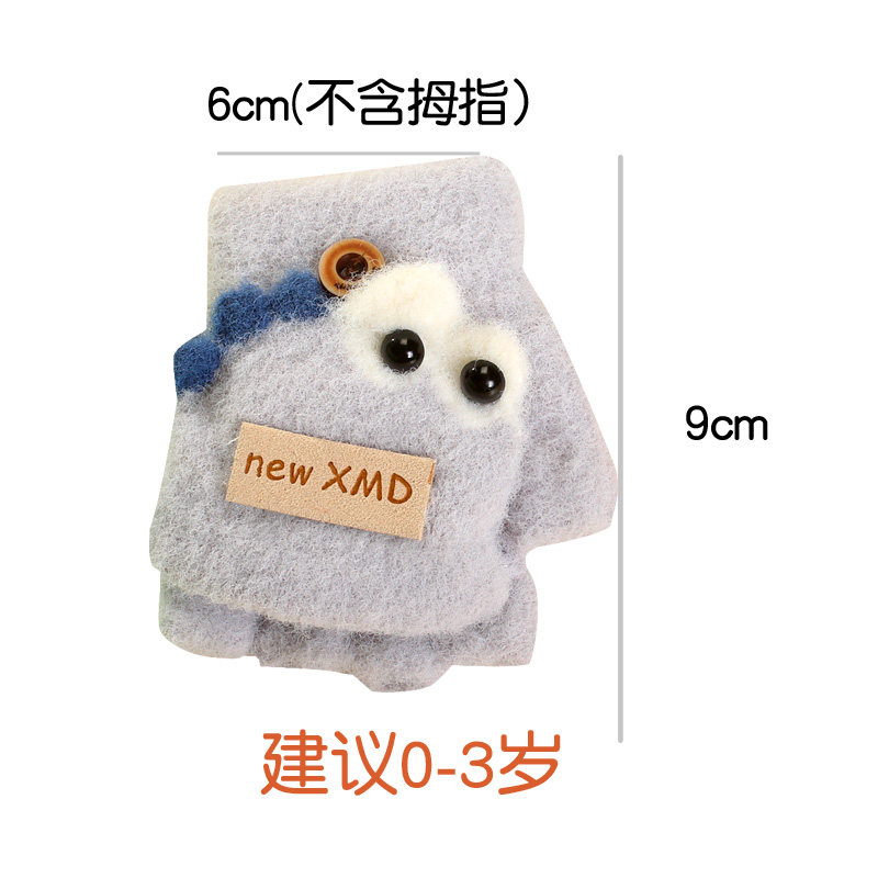 婴儿宝宝手套冬季保暖厚半指男女露指翻盖1幼儿3岁小孩可爱儿童