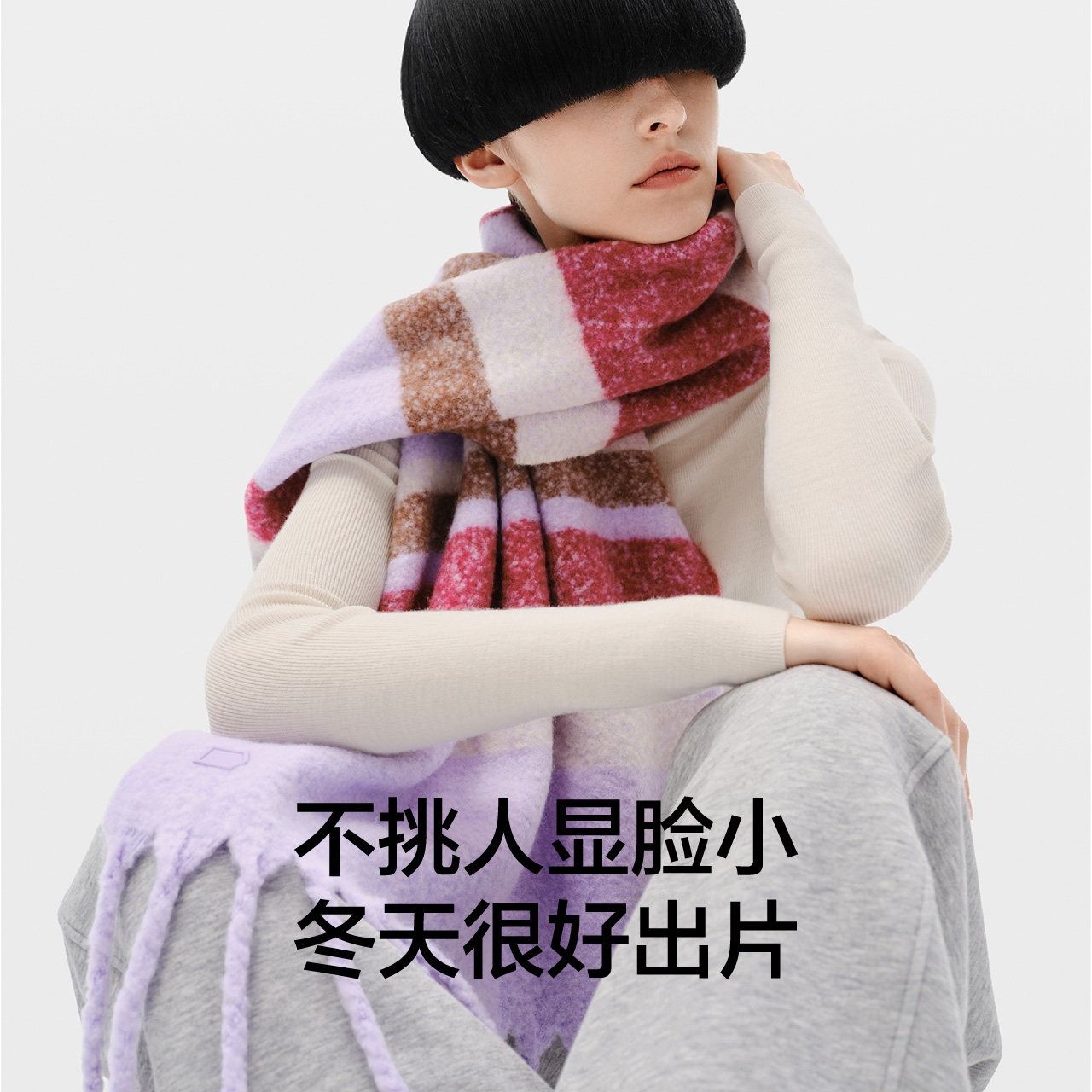 蕉内502Color流苏拼色围巾冬季女韩系氛围感保暖加厚披肩围脖护颈